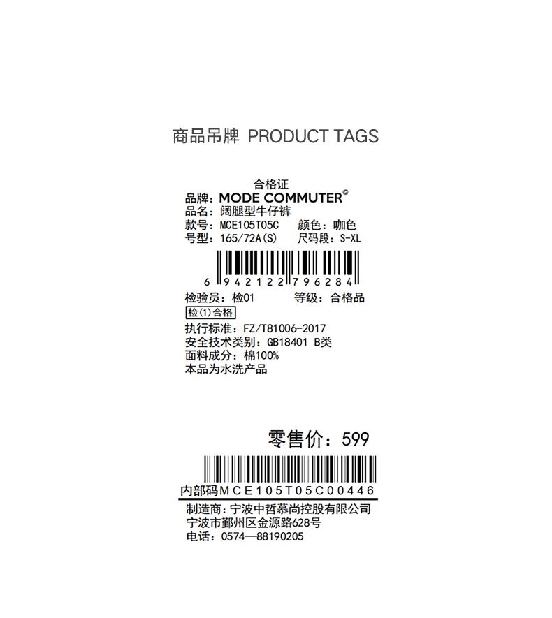 MODE COMMUTER | MC秋季宽松阔腿水洗牛仔长裤牛仔裤MCE105T05C