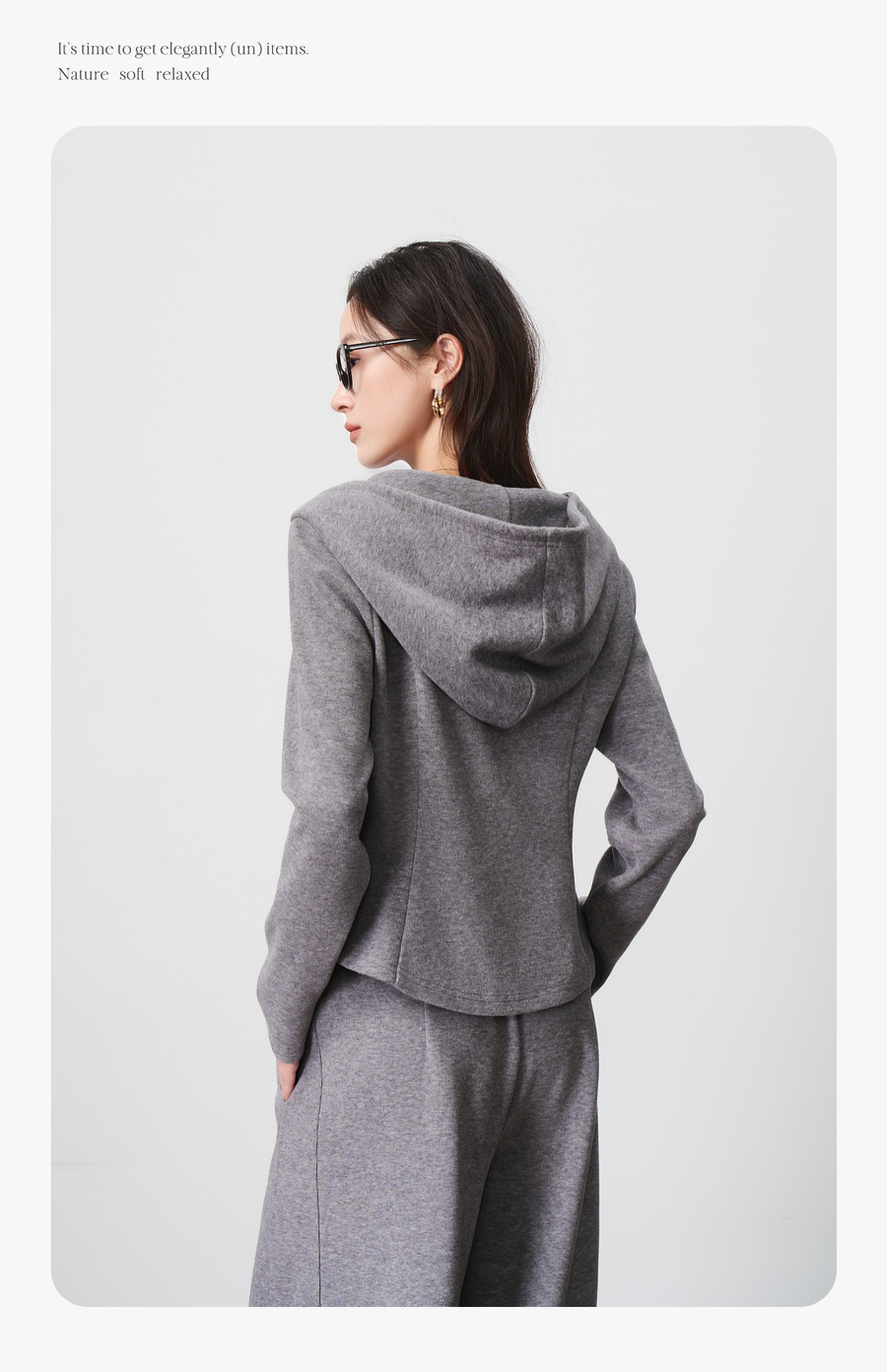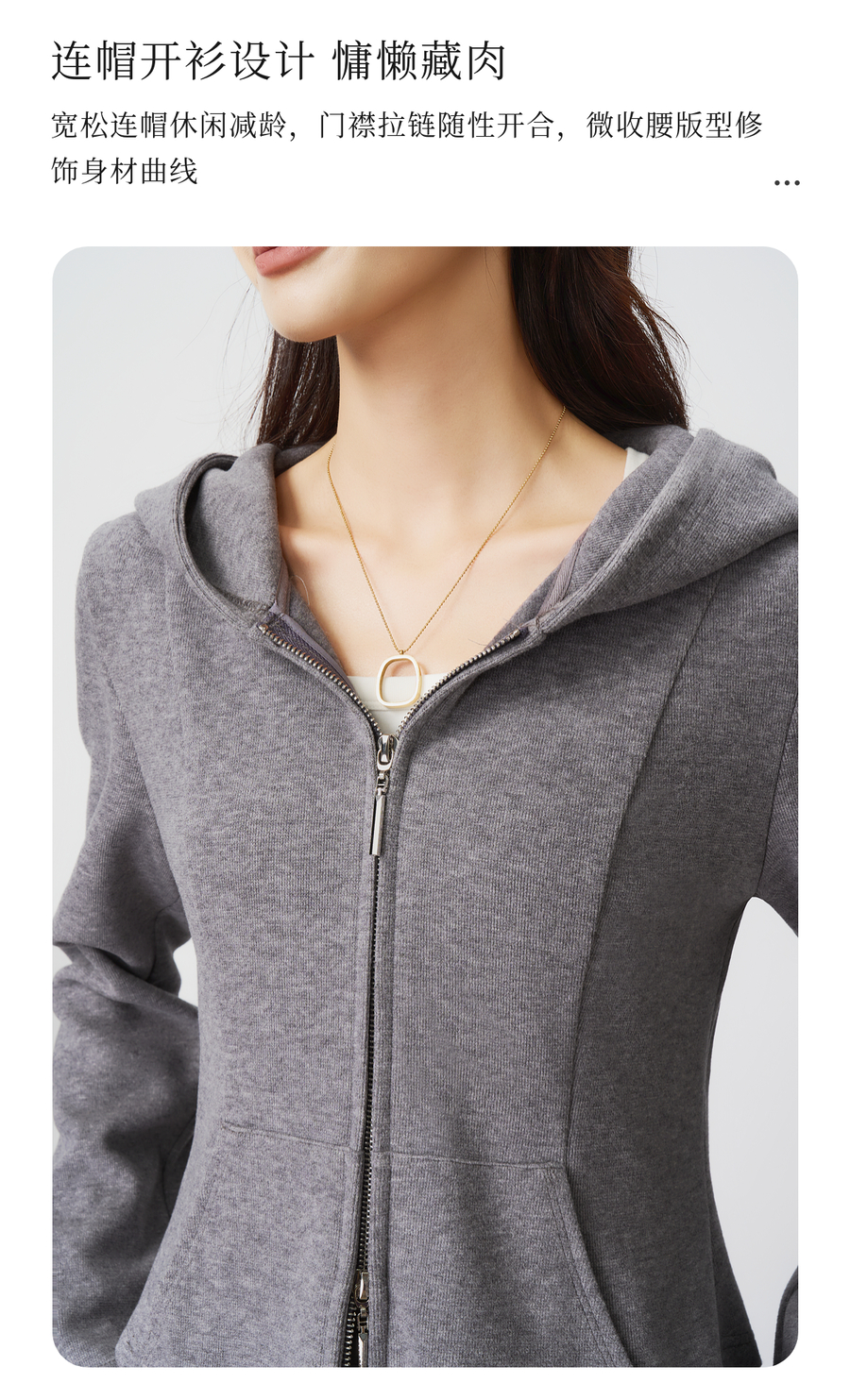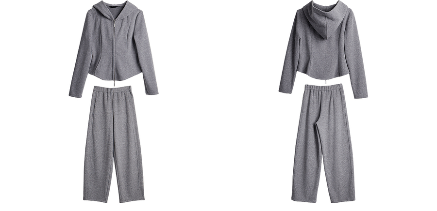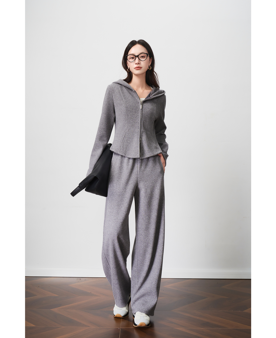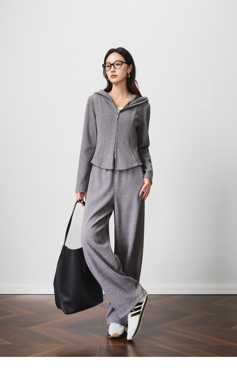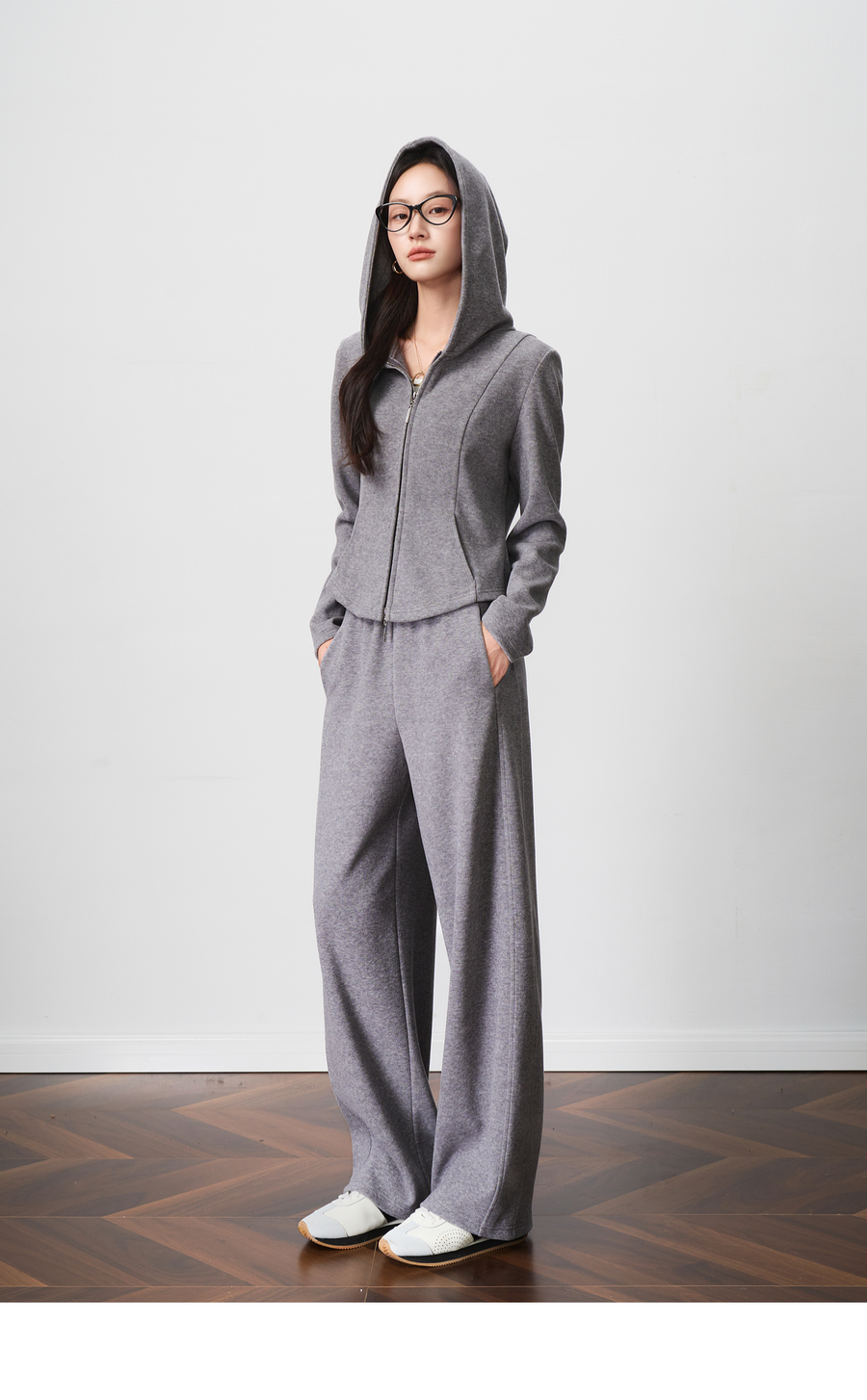 OLrain欧芮儿2025新款女秋季休闲灰慵懒连帽针织开衫裤子两件套装