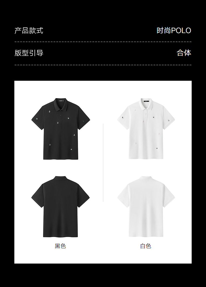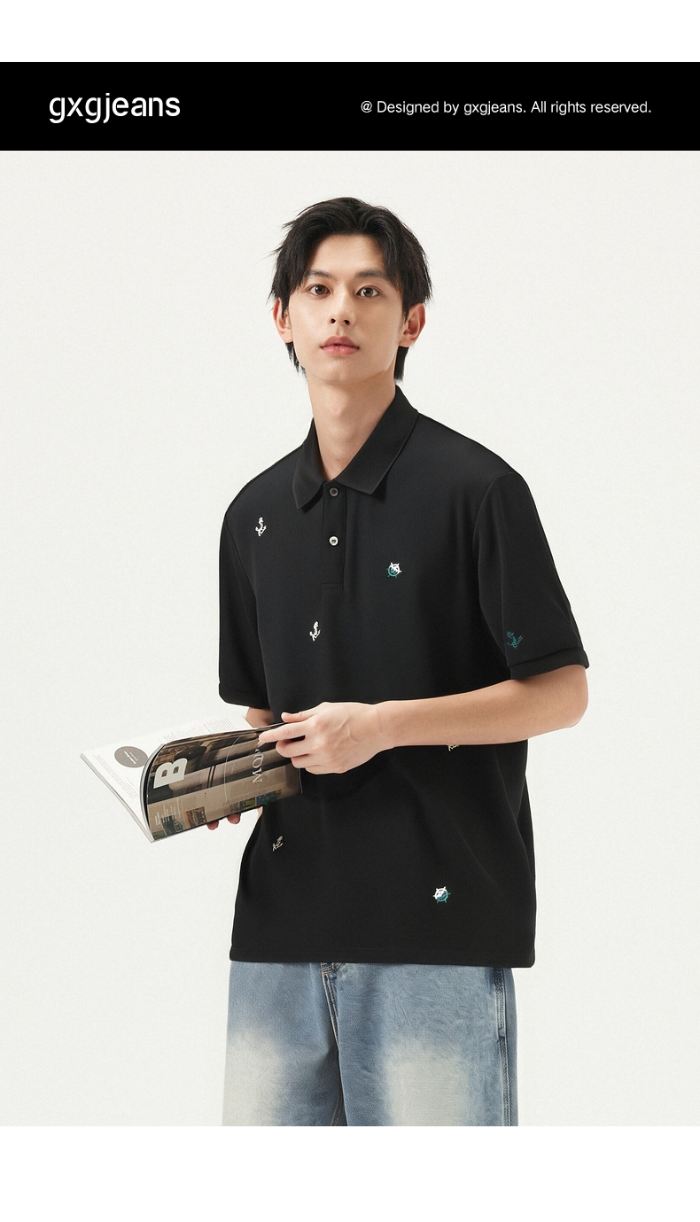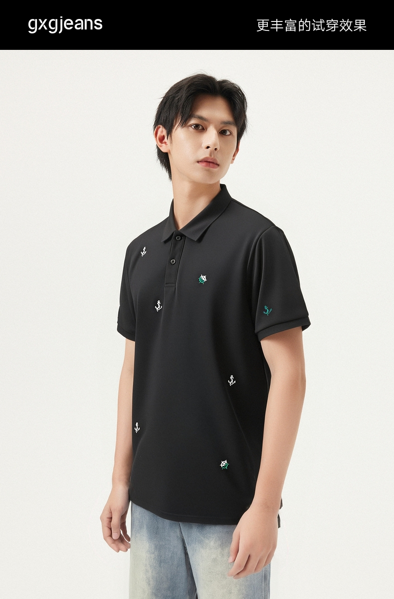 gxg.jeans男装 多色满身刺绣休闲时尚通勤翻领短袖polo衫25夏热卖