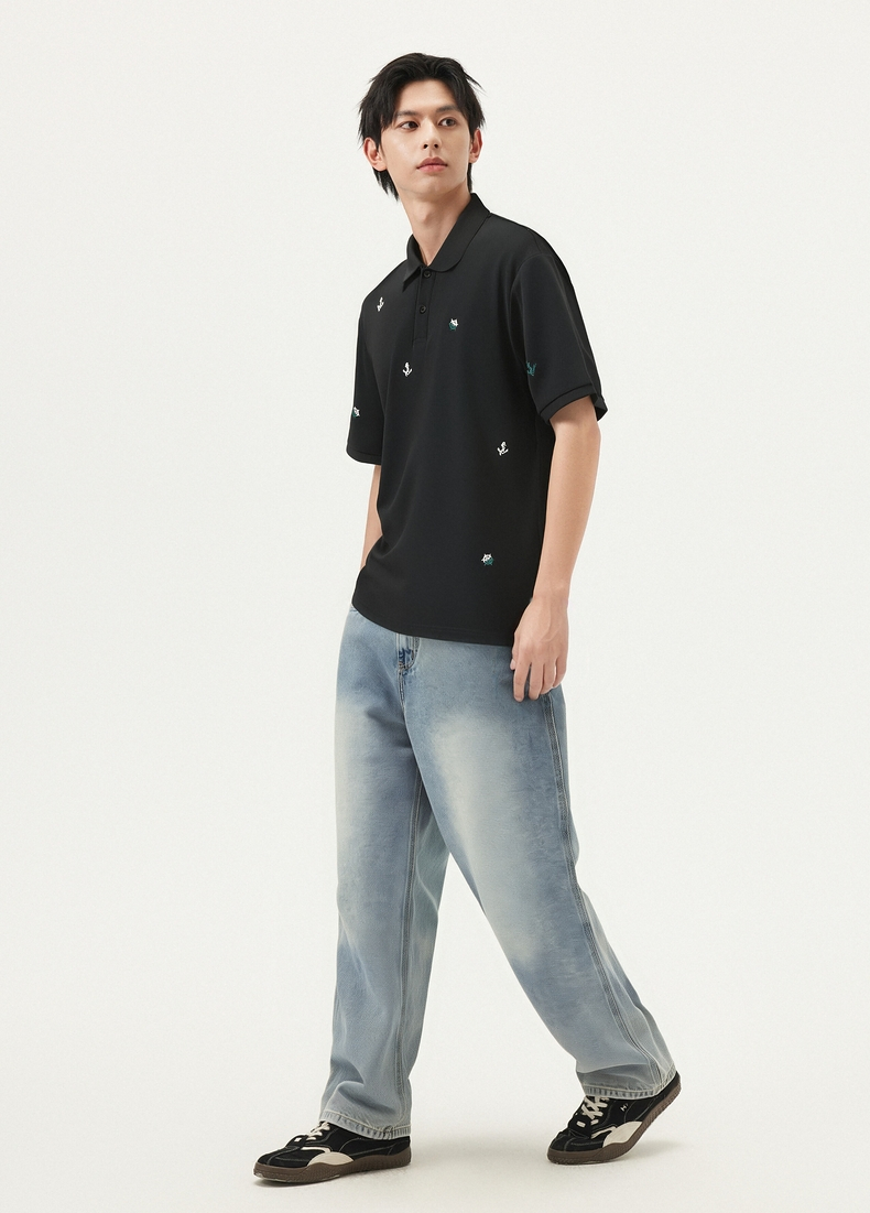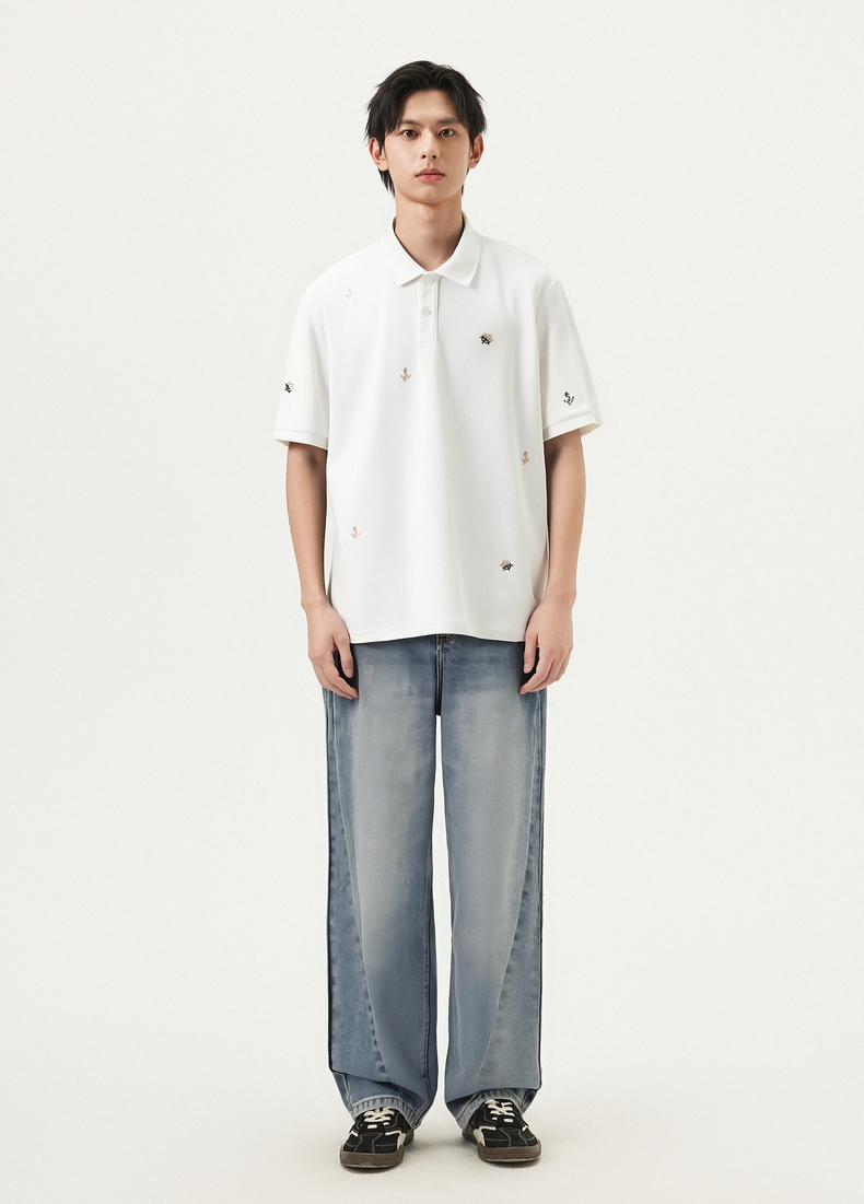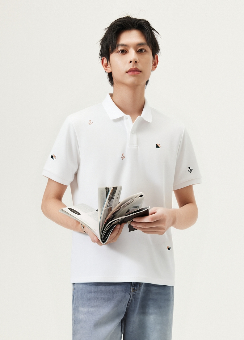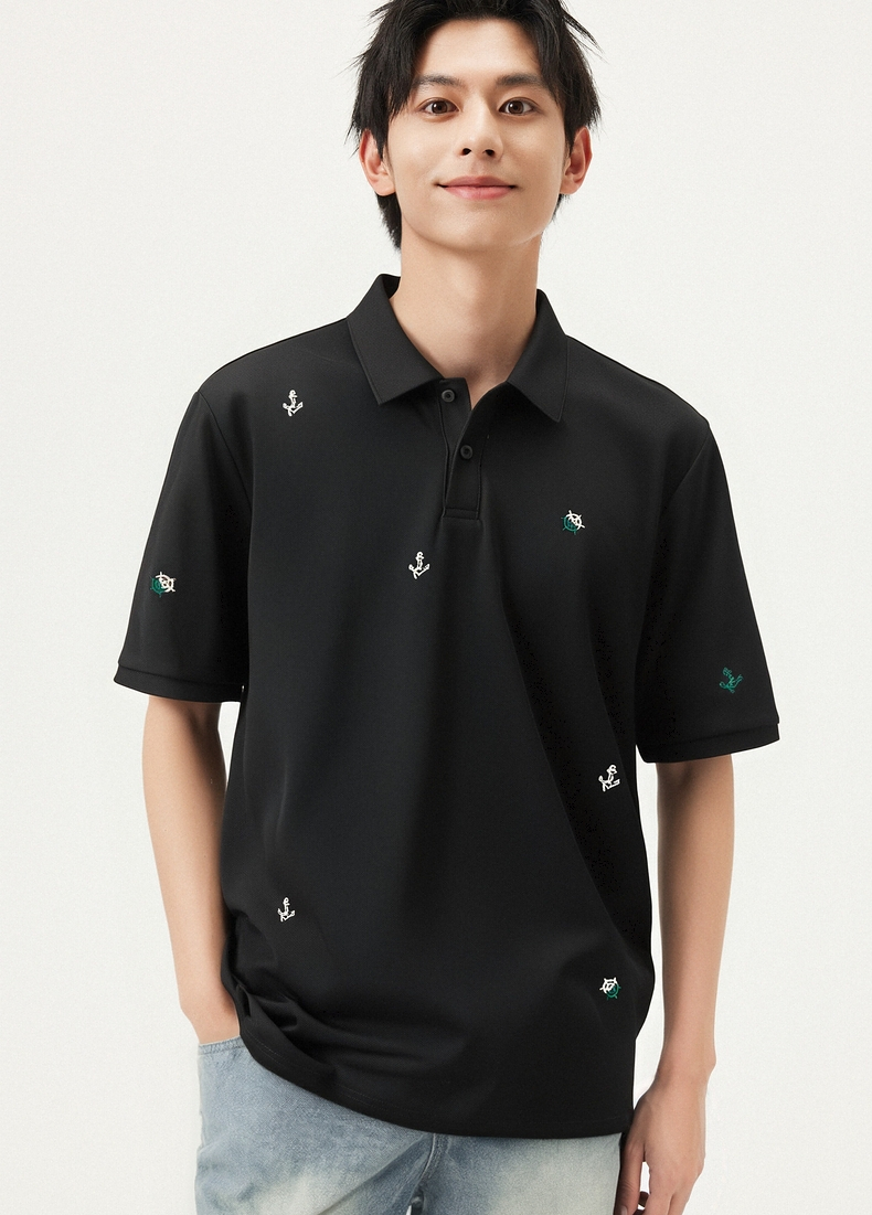 gxg.jeans男装 多色满身刺绣休闲时尚通勤翻领短袖polo衫25夏热卖