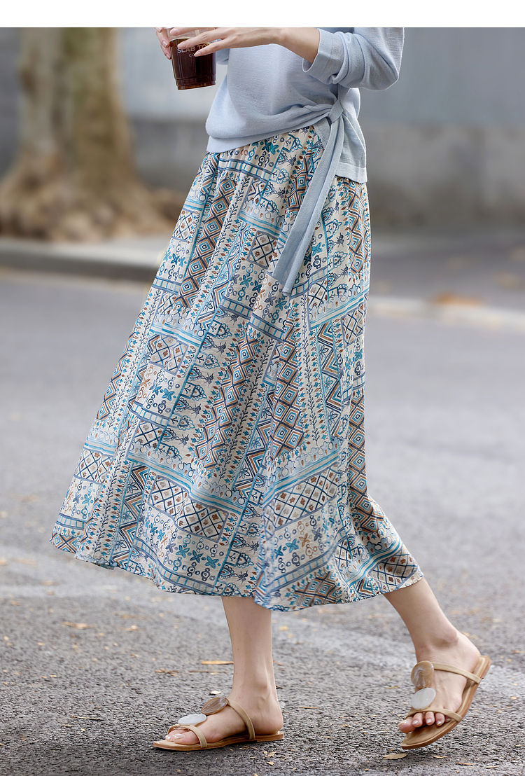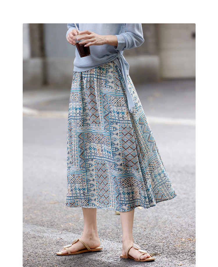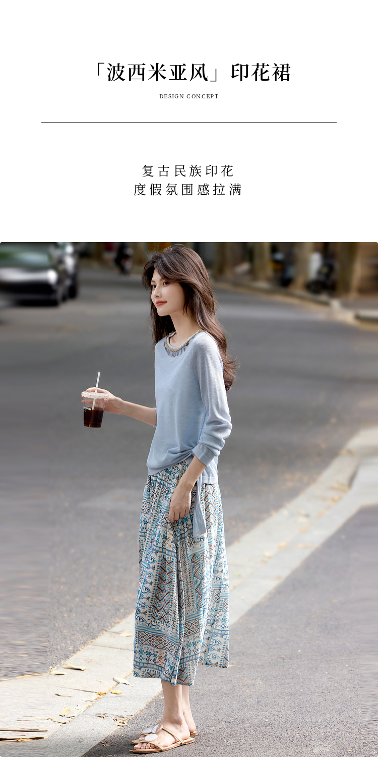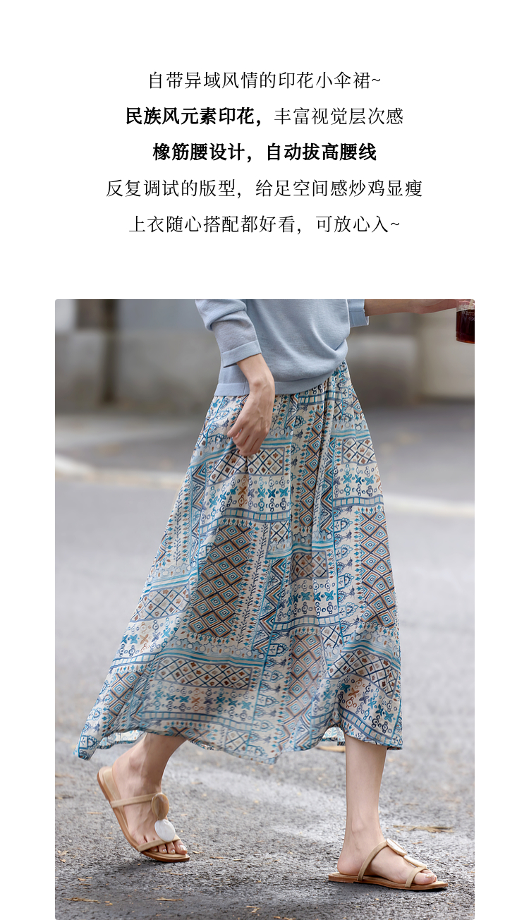 【周末秒杀】熙世界波西米亚风复古印花半身裙女2025夏秋新款高腰度假a字裙子
