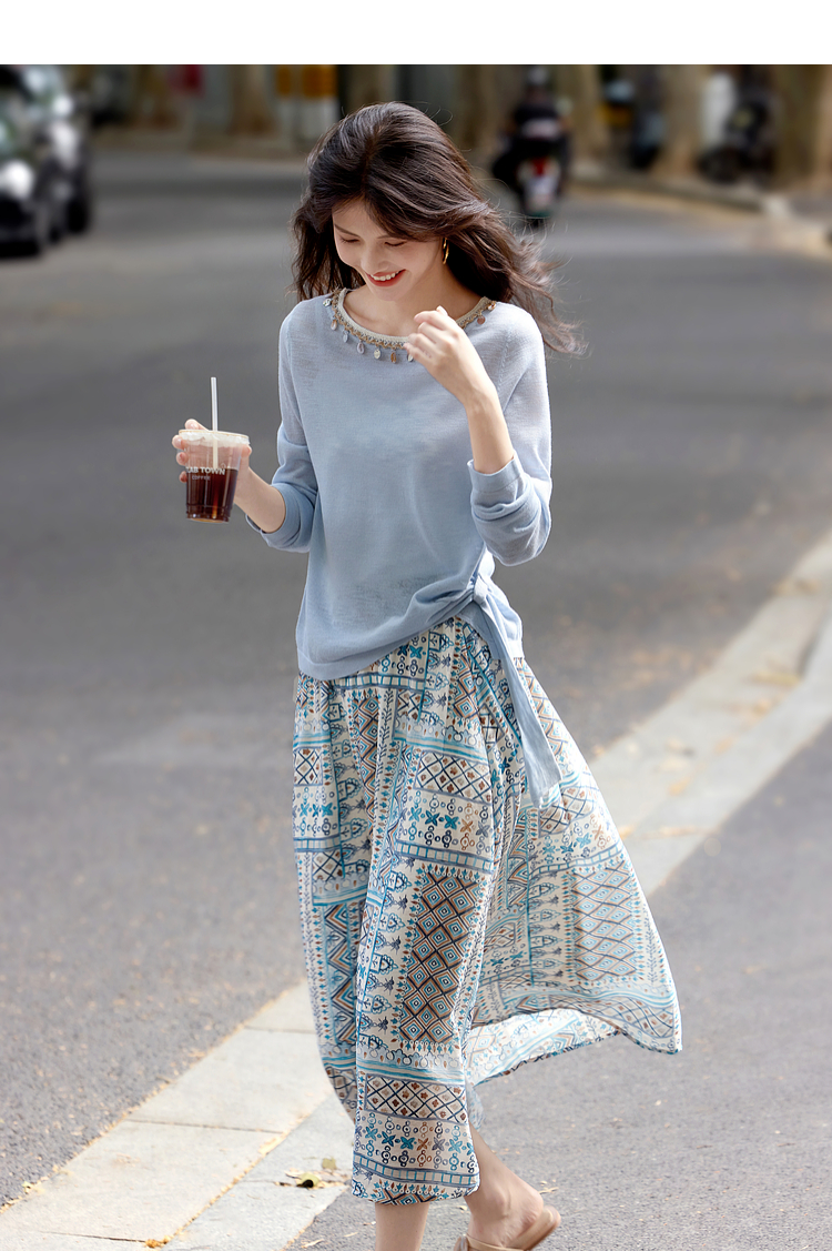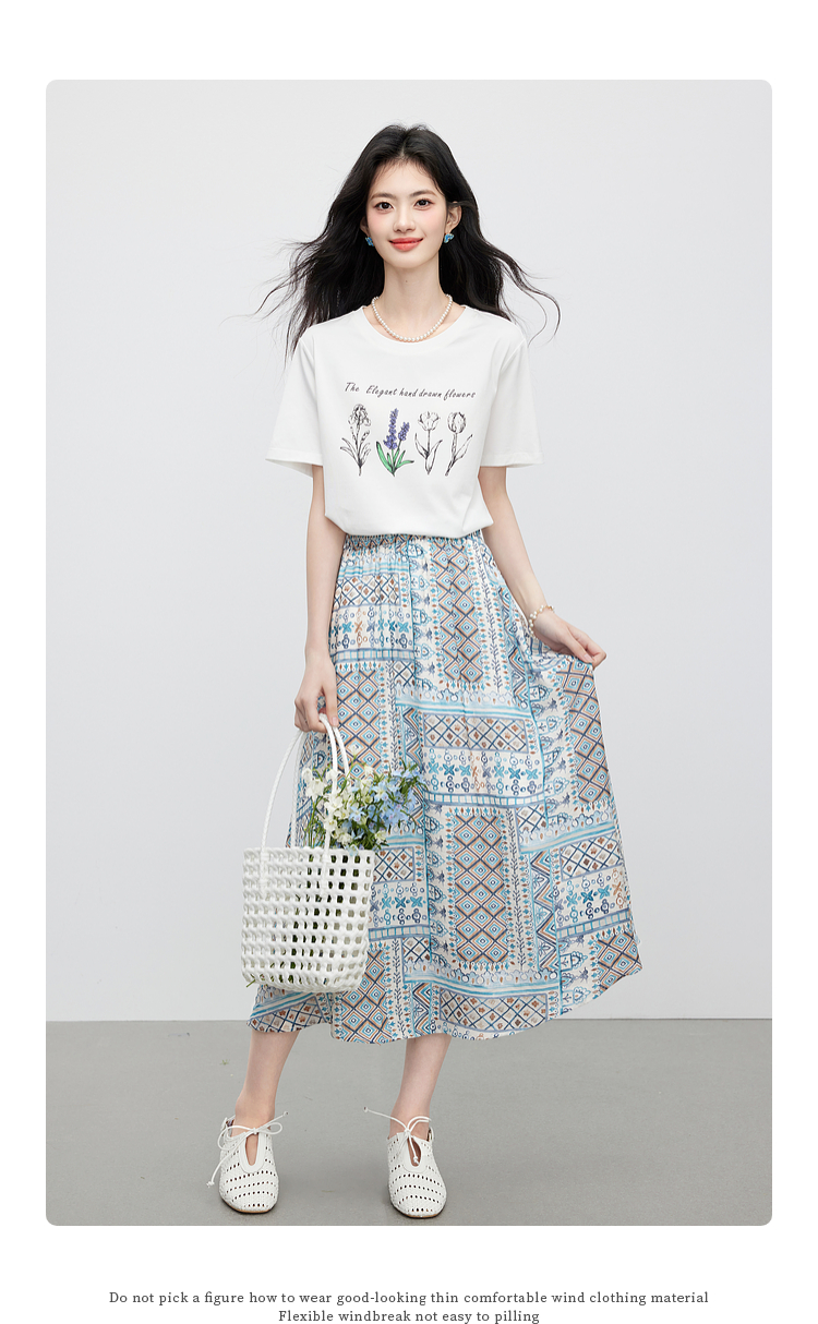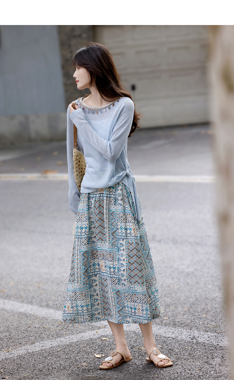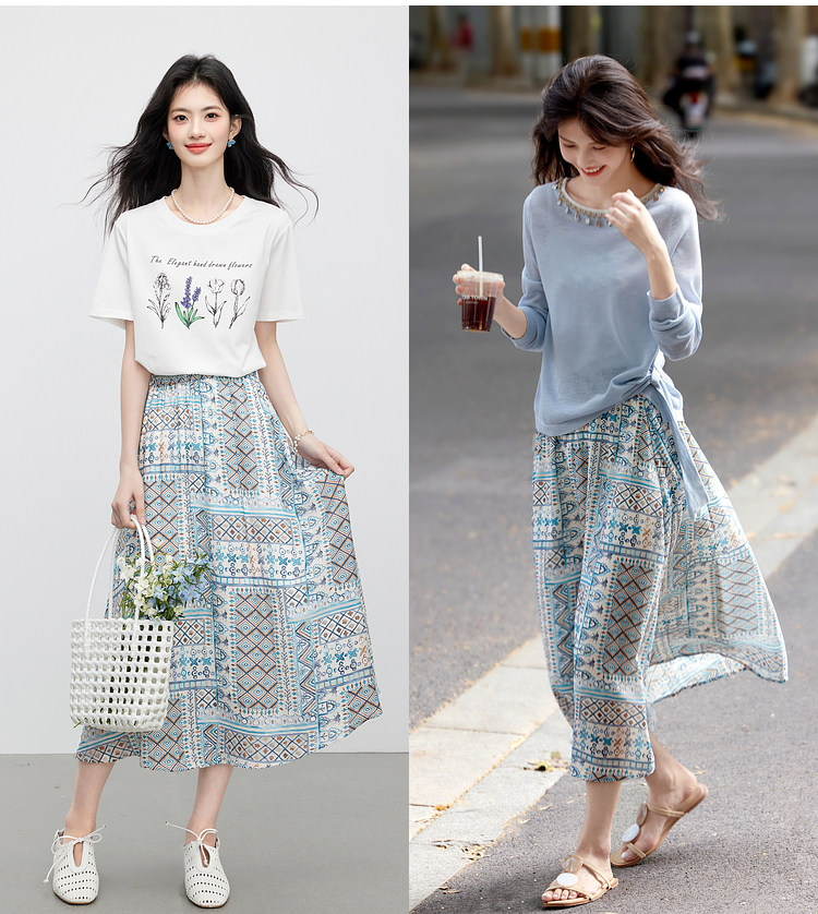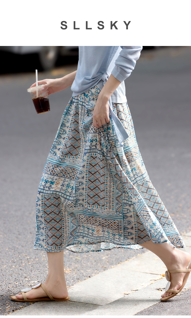 【周末秒杀】熙世界波西米亚风复古印花半身裙女2025夏秋新款高腰度假a字裙子
