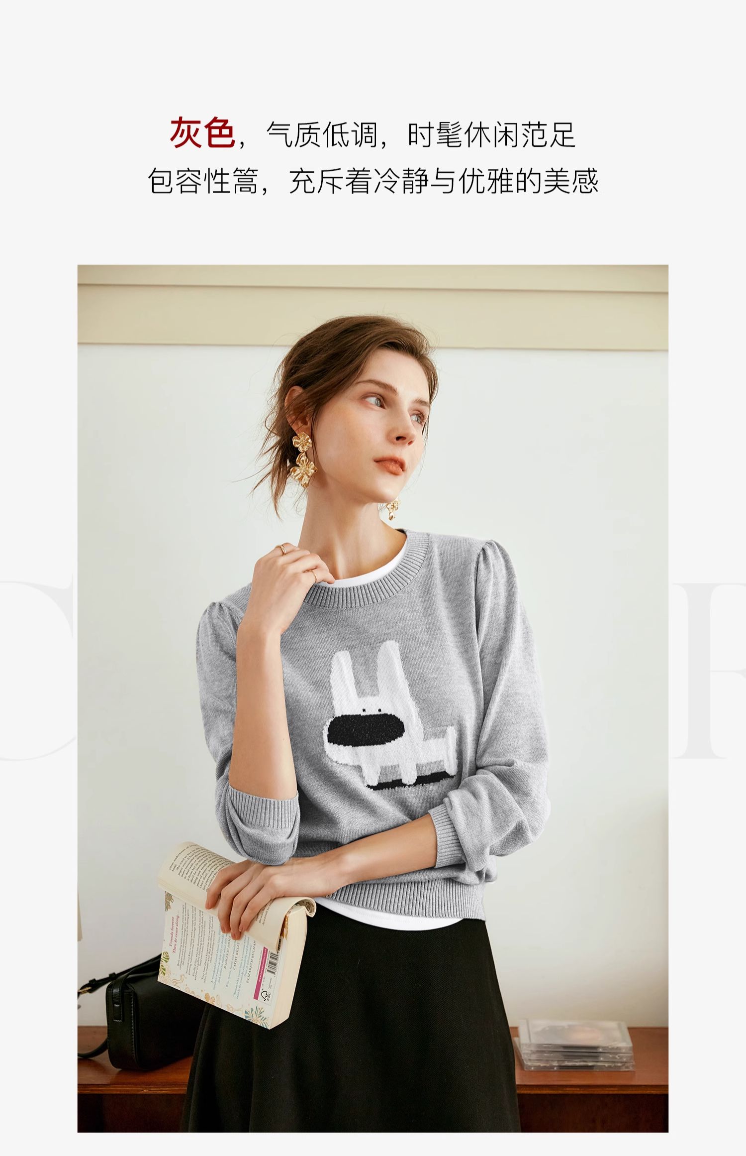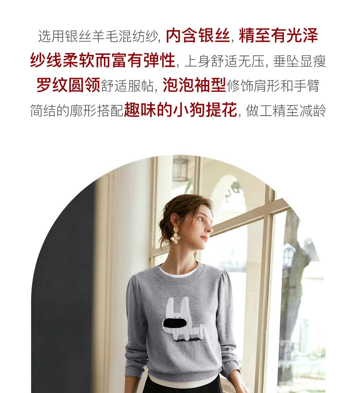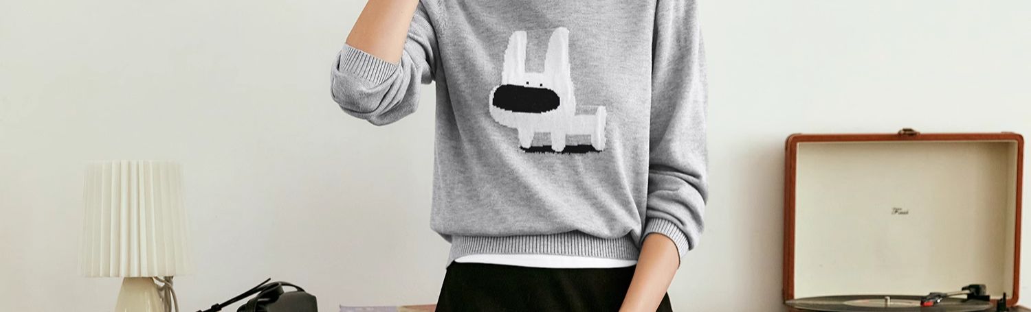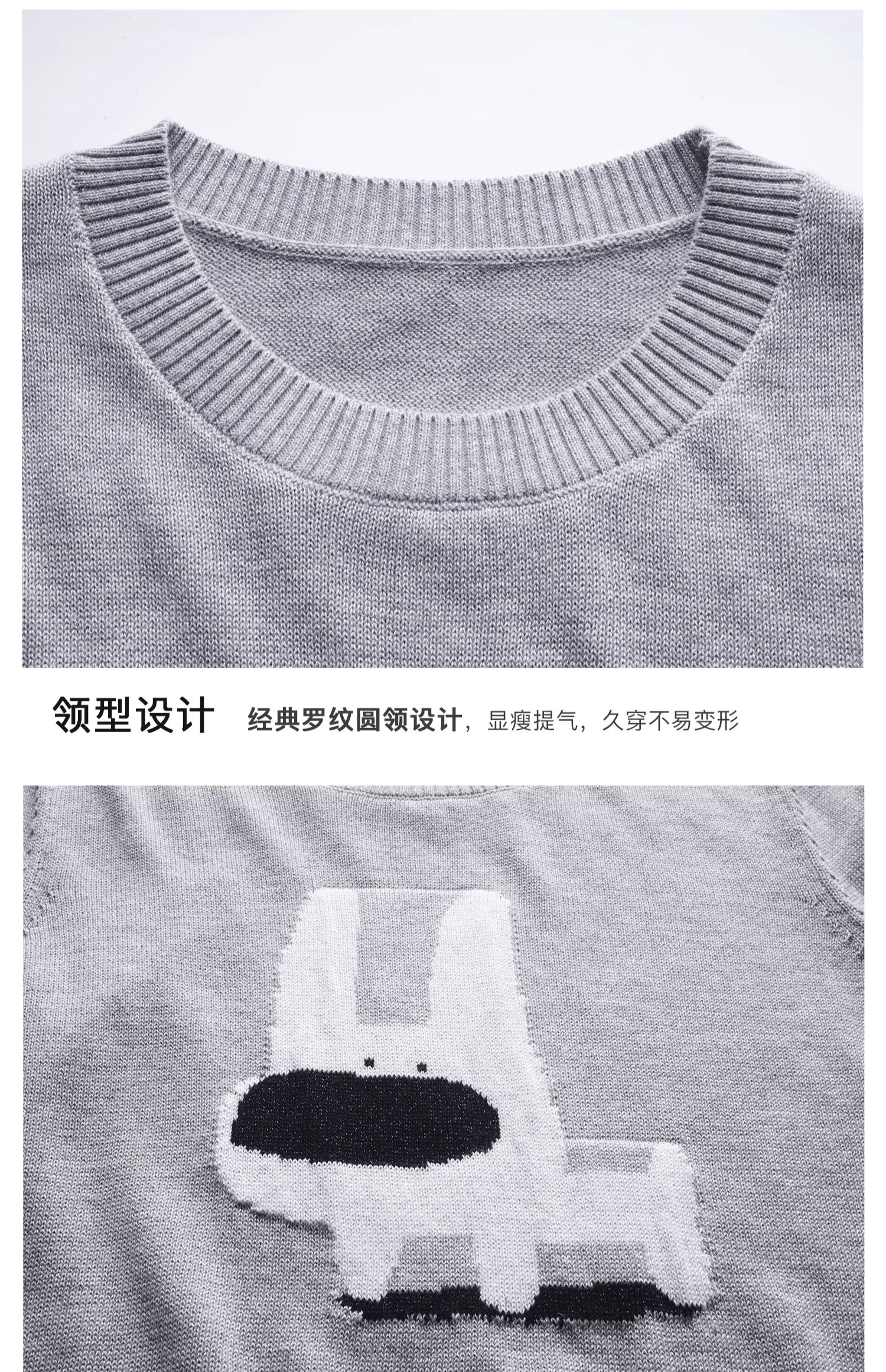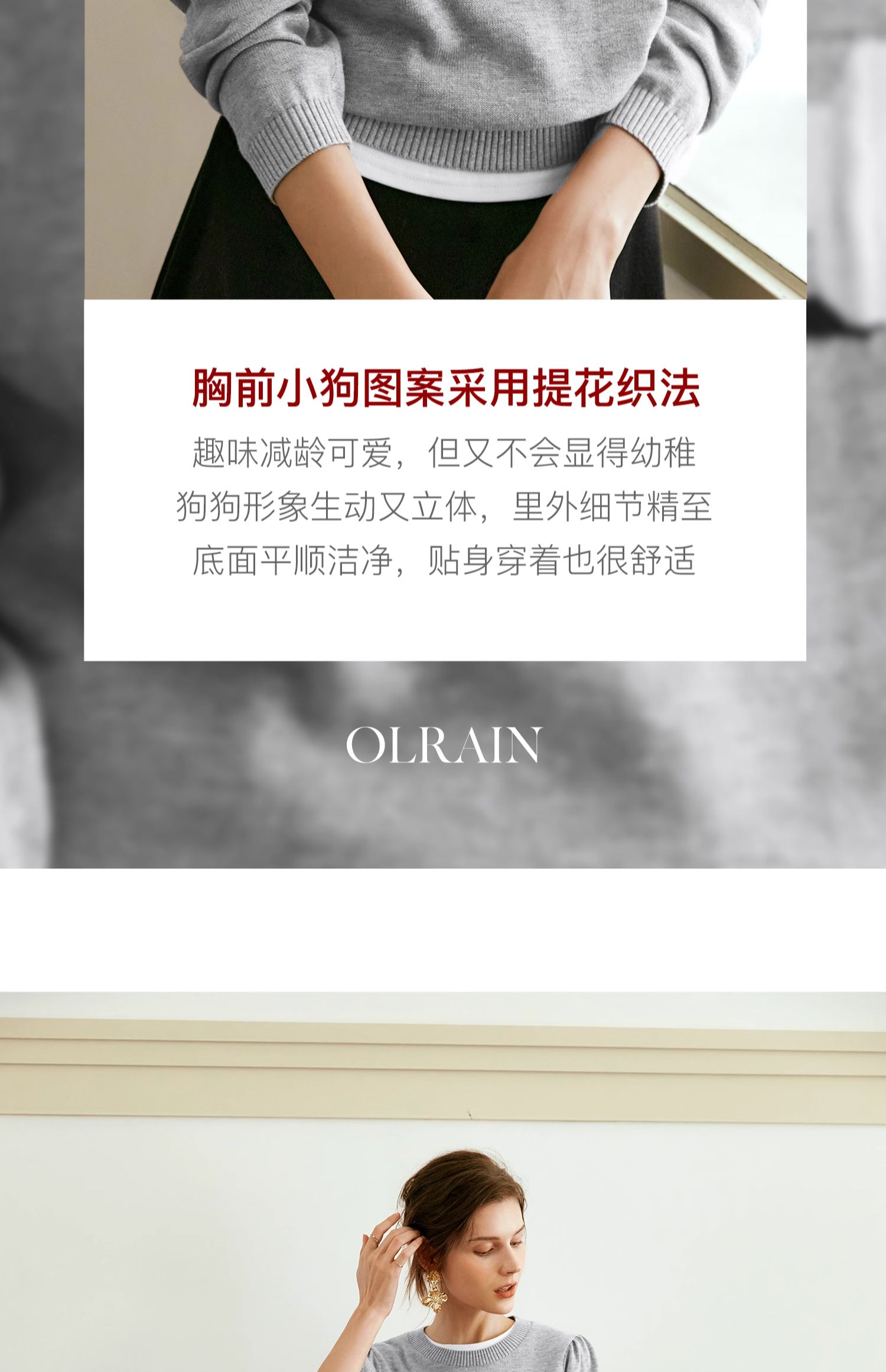 OLrain欧芮儿法式圆领针织衫女早秋2024新款趣味提花图案减龄上衣