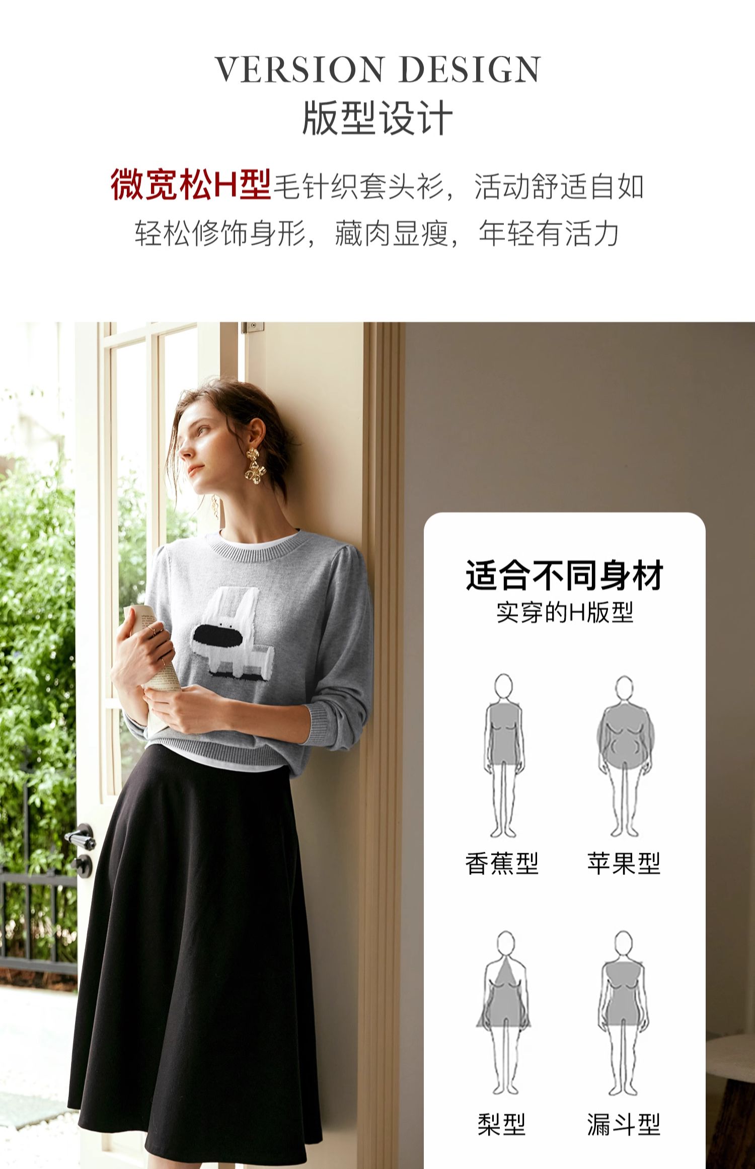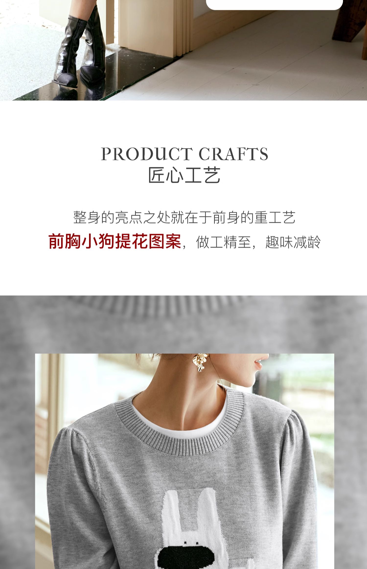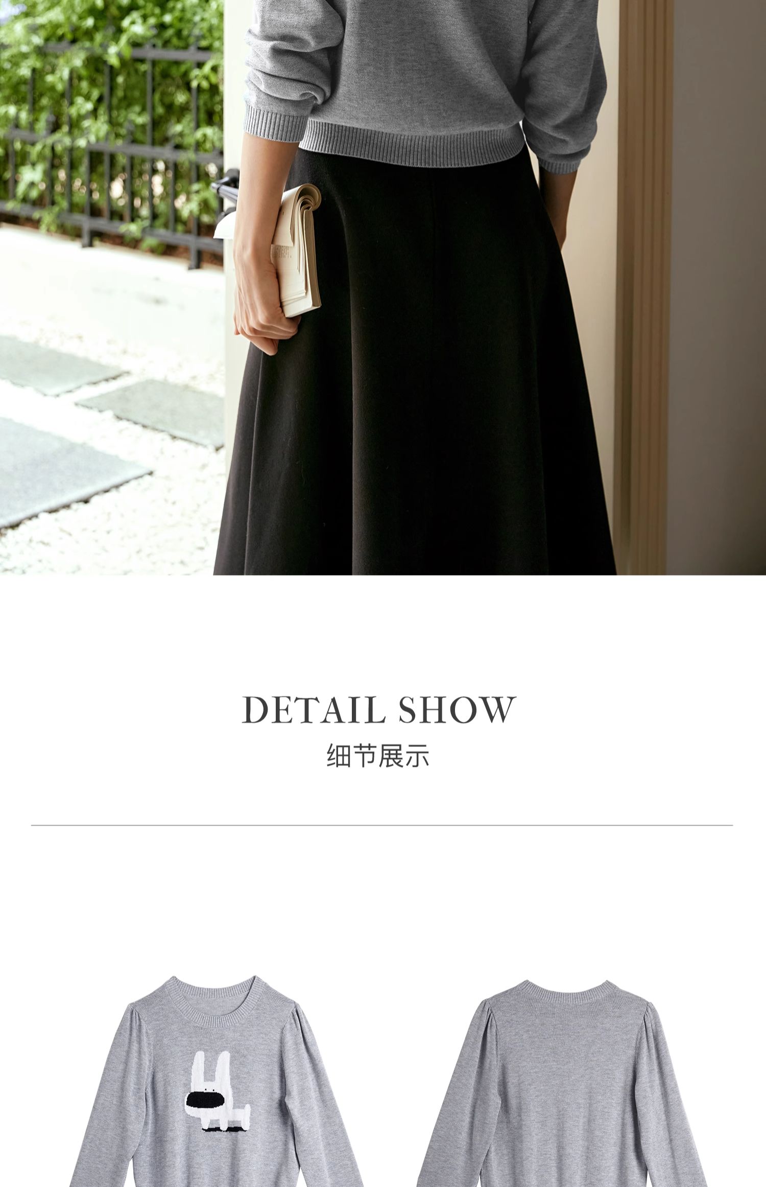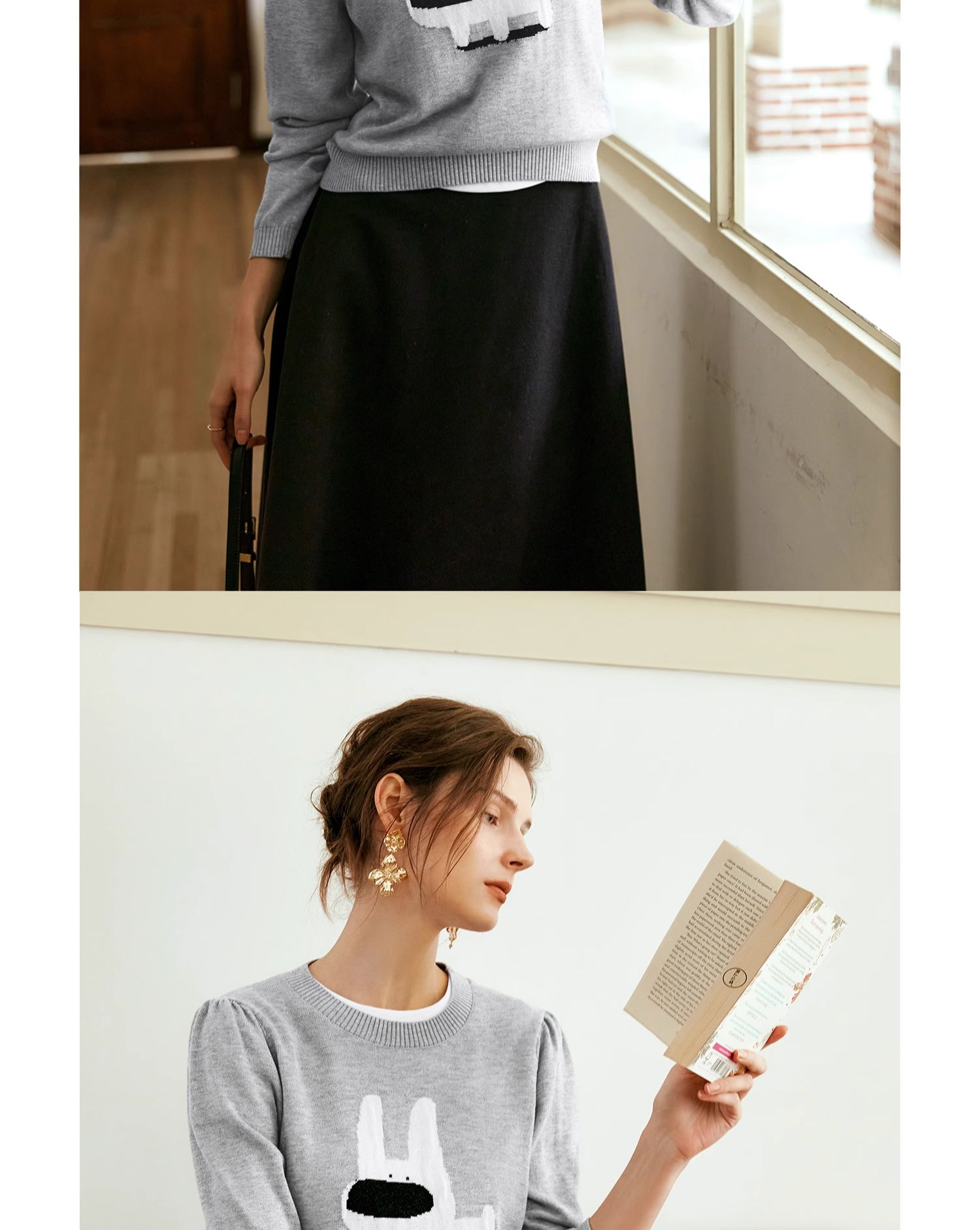 OLrain欧芮儿法式圆领针织衫女早秋2024新款趣味提花图案减龄上衣