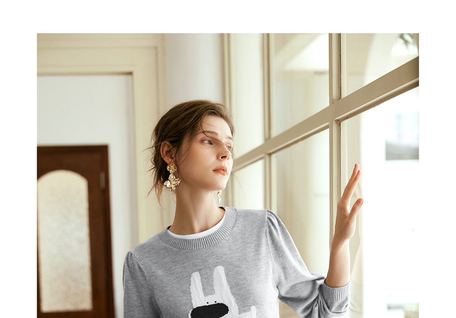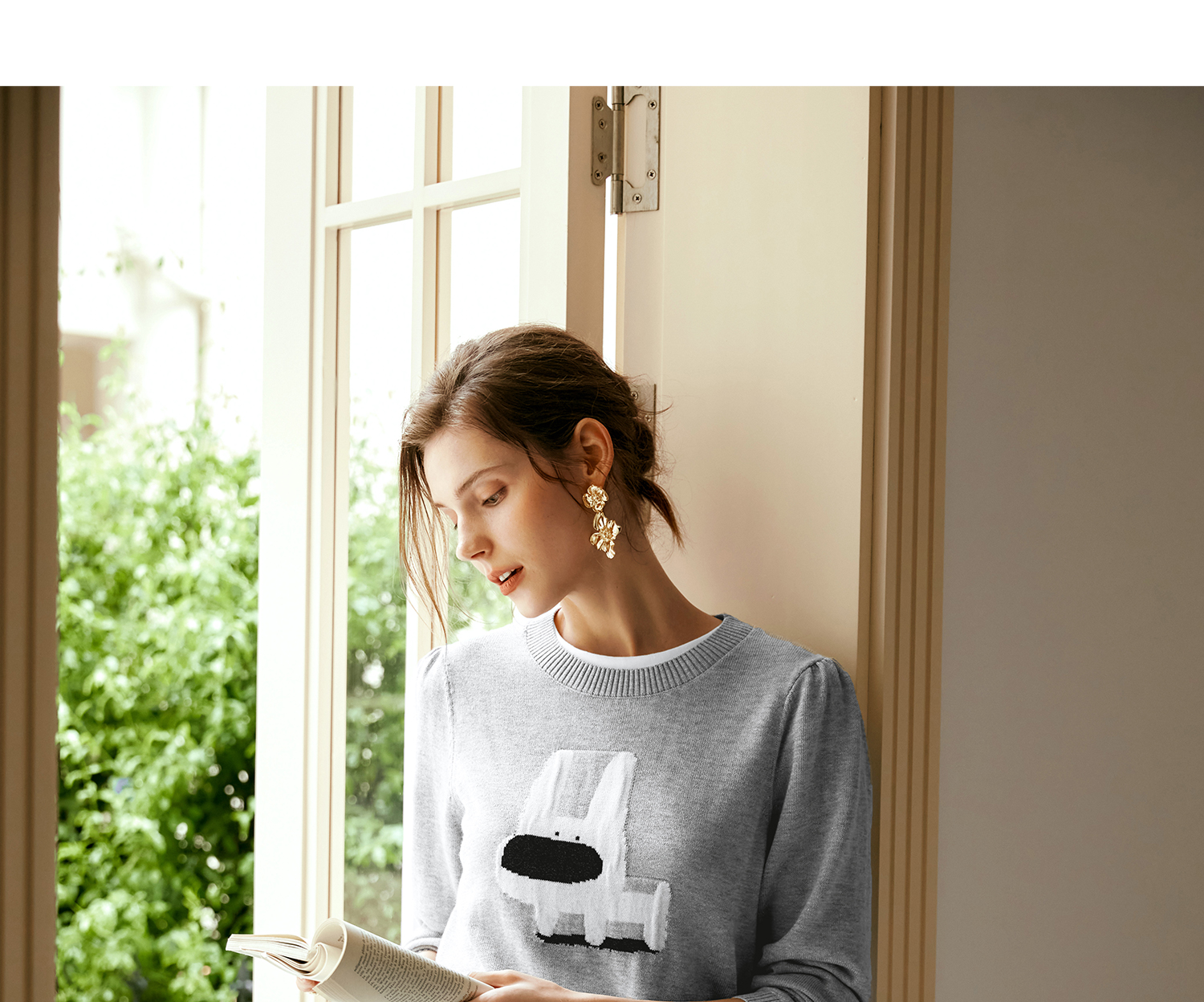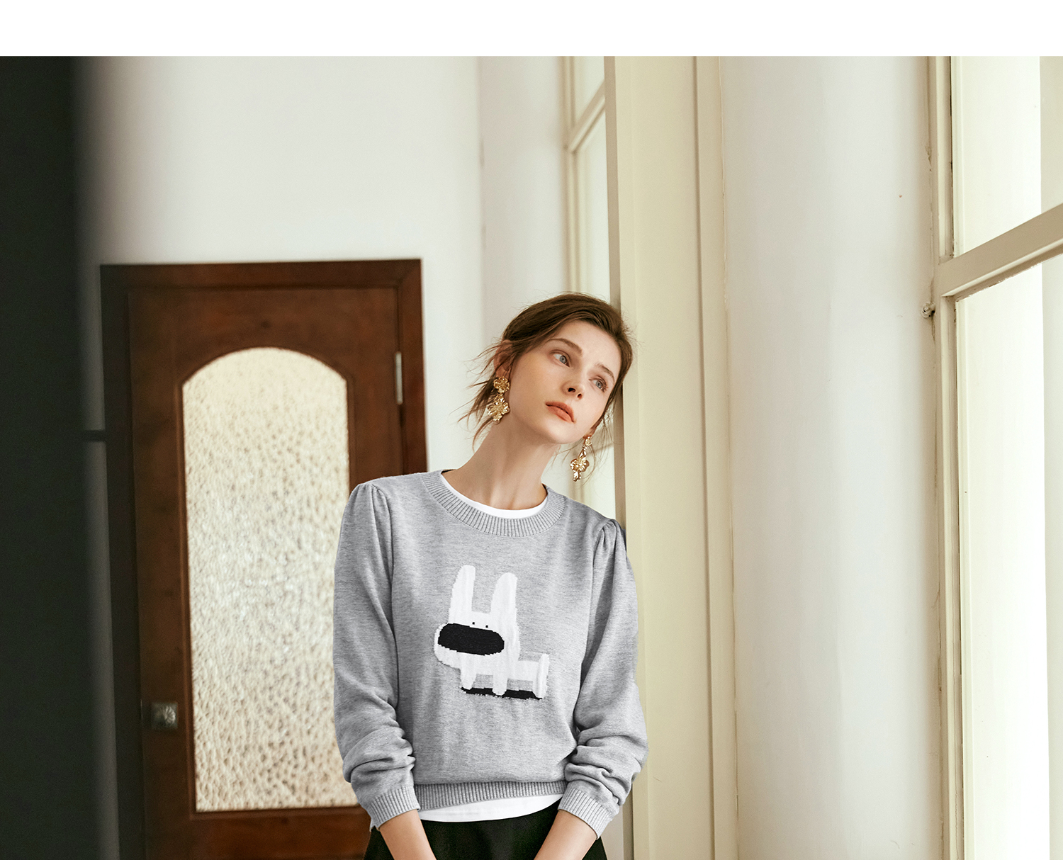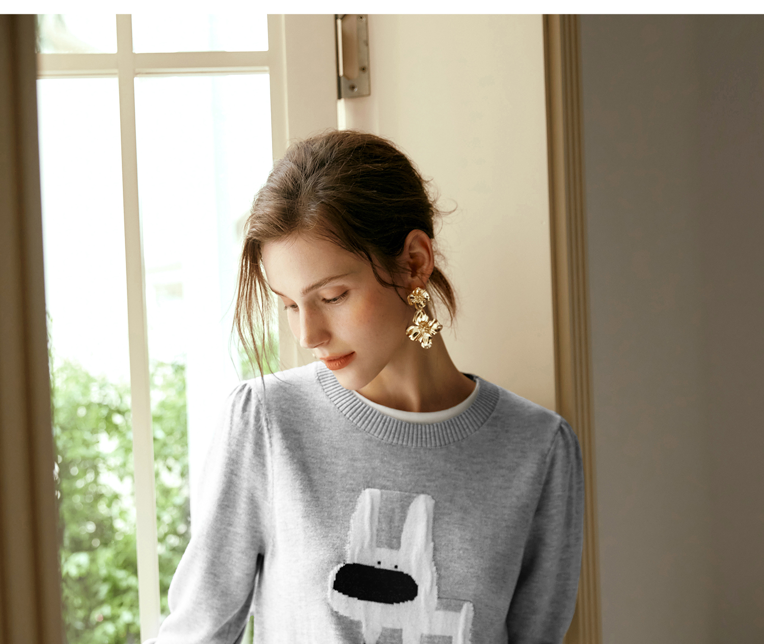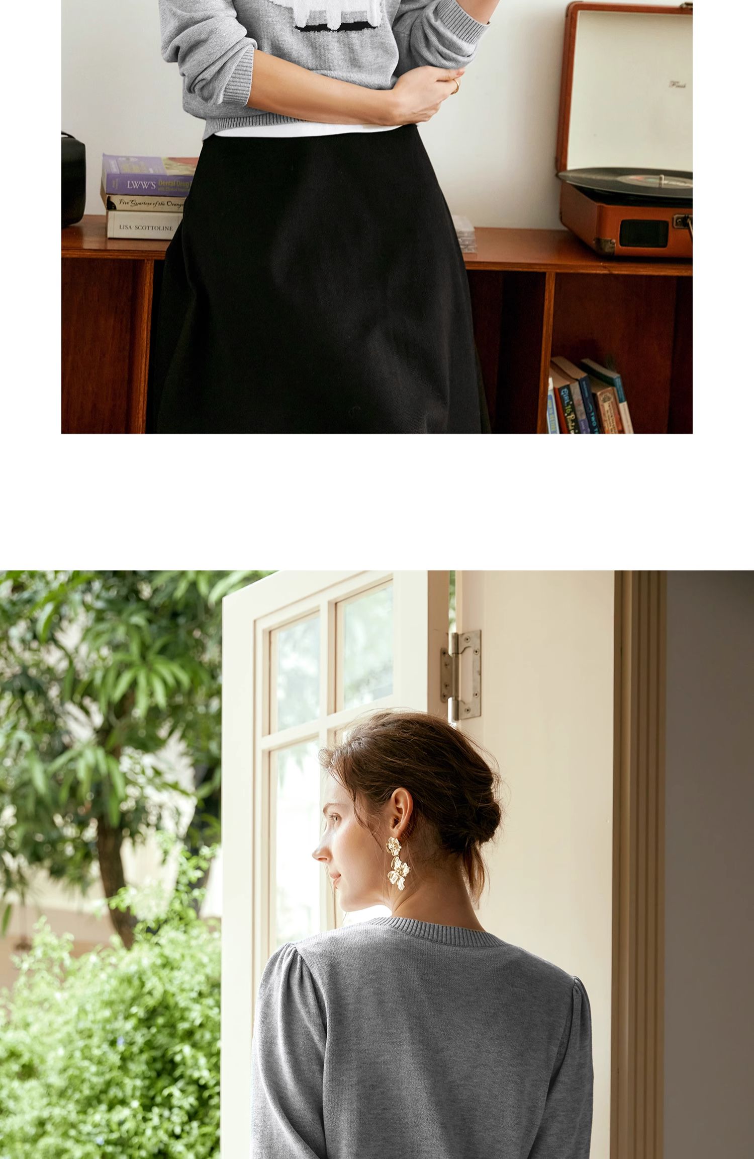 OLrain欧芮儿法式圆领针织衫女早秋2024新款趣味提花图案减龄上衣