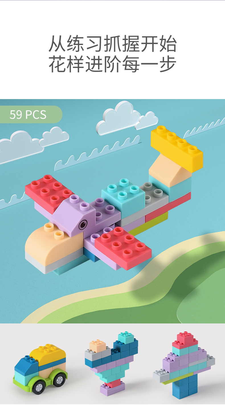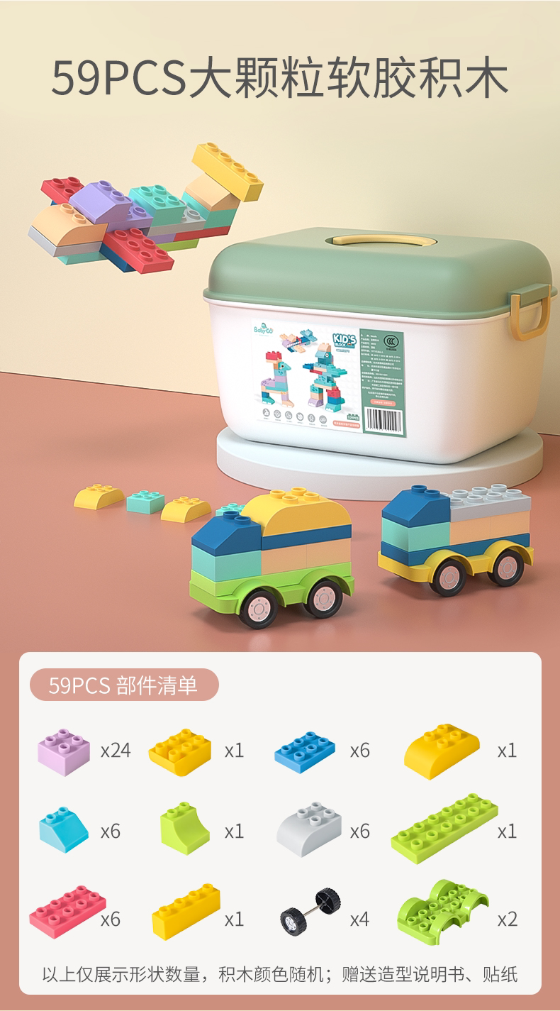 【积分商城】宝贝去哪儿babygo婴儿软胶积木可啃咬水煮6个月儿童拼装玩具宝宝大颗粒积木