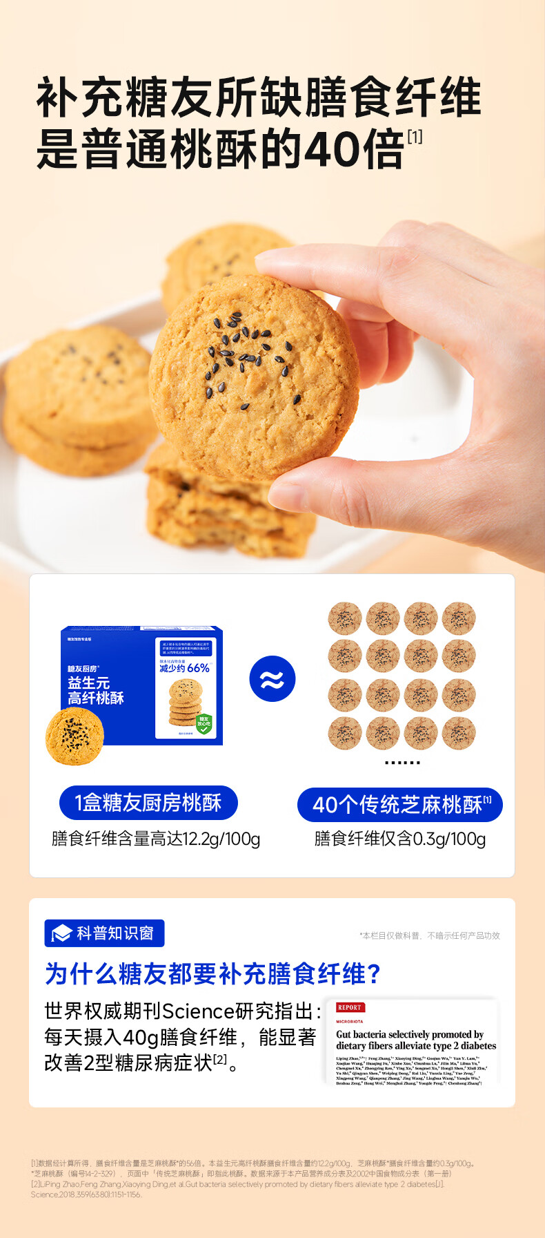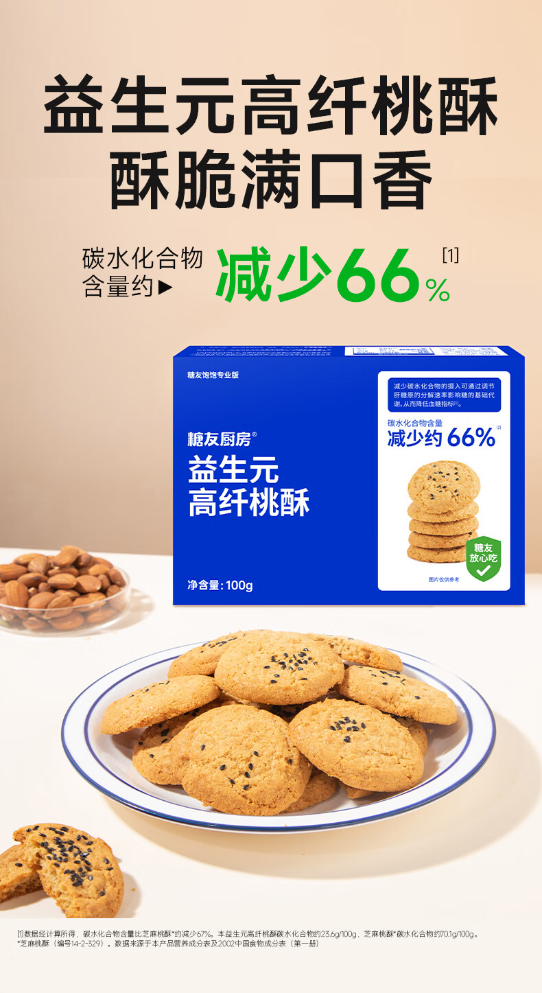 【分仓直发包邮】糖友厨房益生元高纤桃酥100g*3盒