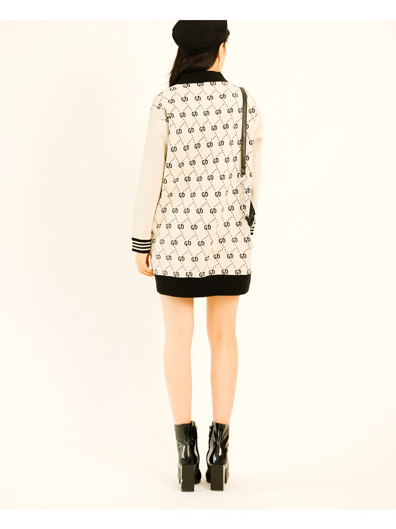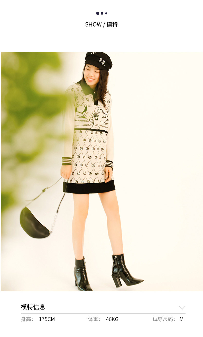 oldcolour秋季时尚玩味图案休闲气质中长款针织连衣裙M33106352