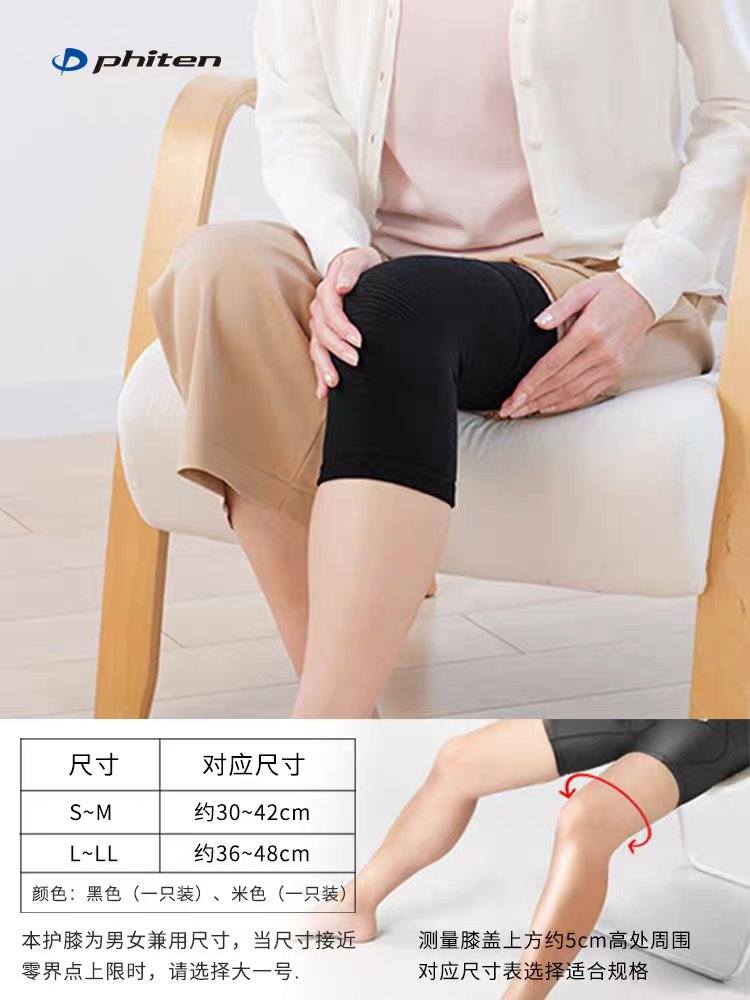 Phiten法藤 新品!!护膝原装进口保暖老寒腿水溶钛男女膝盖关节保护套护膝S-M-L-LL
