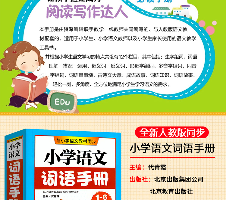 小学语文词语手册统编部编人教版123456一二三四五六年级上下册适用小学生课本教材同步多功能生字词典搭配运用组词造句工具书