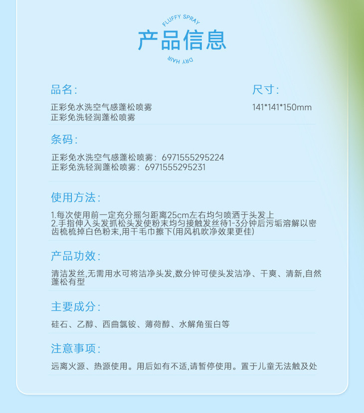 自营(泰利嘉)- 懒人头发免洗干发喷雾去油清爽空气感显发量蓬松喷雾头发 50ml【常规款】*3瓶