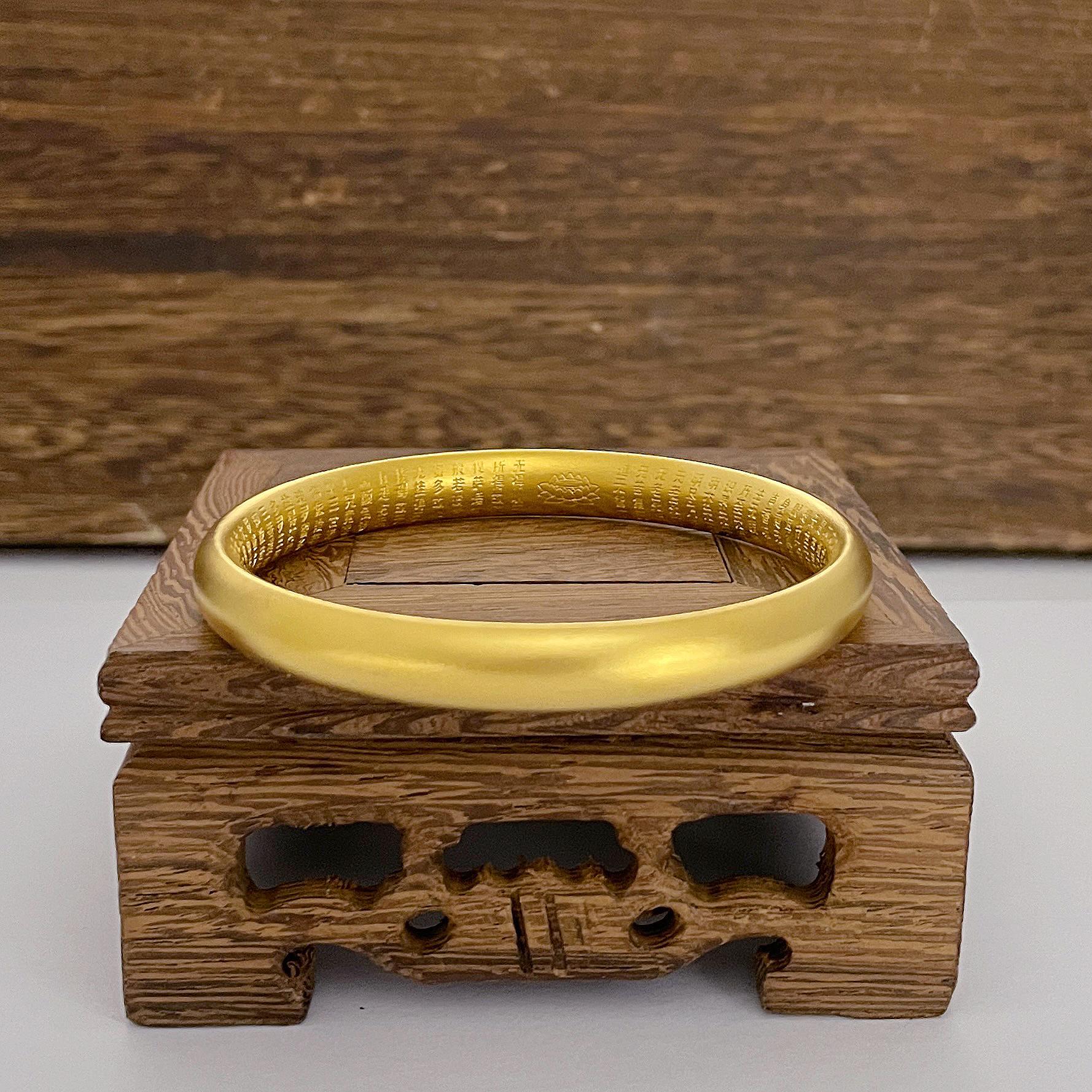 【限时克减150元】足金999.9 【油亮版本】古法空心(面宽约7.3-7.7mm)宽面泥鳅背内莲花心经固口手镯(AIGFSZ00014)(预售产品下单后不退款不退货不换货不补差价)
