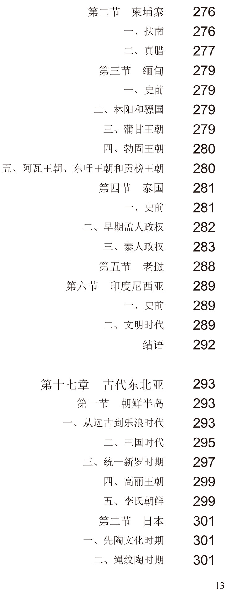中国部分第一章中国史前文化第二章商-西周第三章东周-汉代第四章三国-魏晋南北朝-盛唐第五章中唐-宋金第六章元-明-清第七章近代中国第八章现代中国外国部分第一章外国史前文化第二章美索不达米亚第三章古埃及第四章上古印度第五章古代小亚细亚与叙利亚第六章米诺斯和迈锡尼