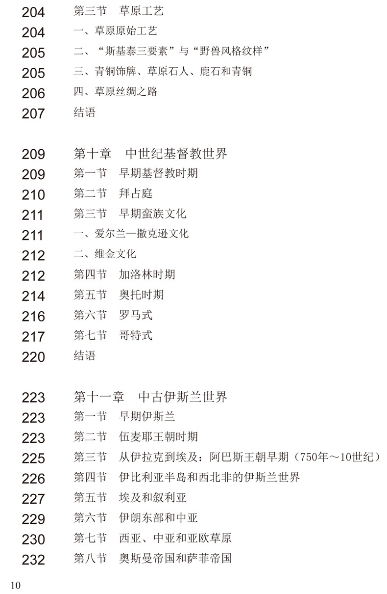第十章中世纪基督教世界第十一章中古伊斯兰世界第十二章中古印度第十三章撒哈拉以南古代非洲第十四章古代大洋洲第十五章古代美洲第十六章古代东南亚第十七章古代东北亚第十八章近代西方第十九章现代西方参考文献后记