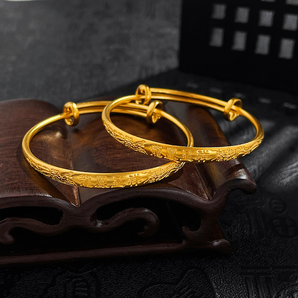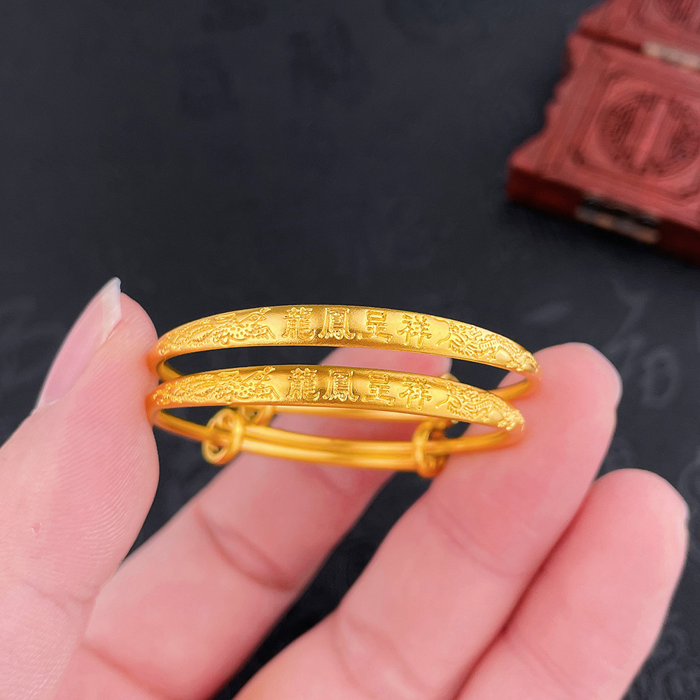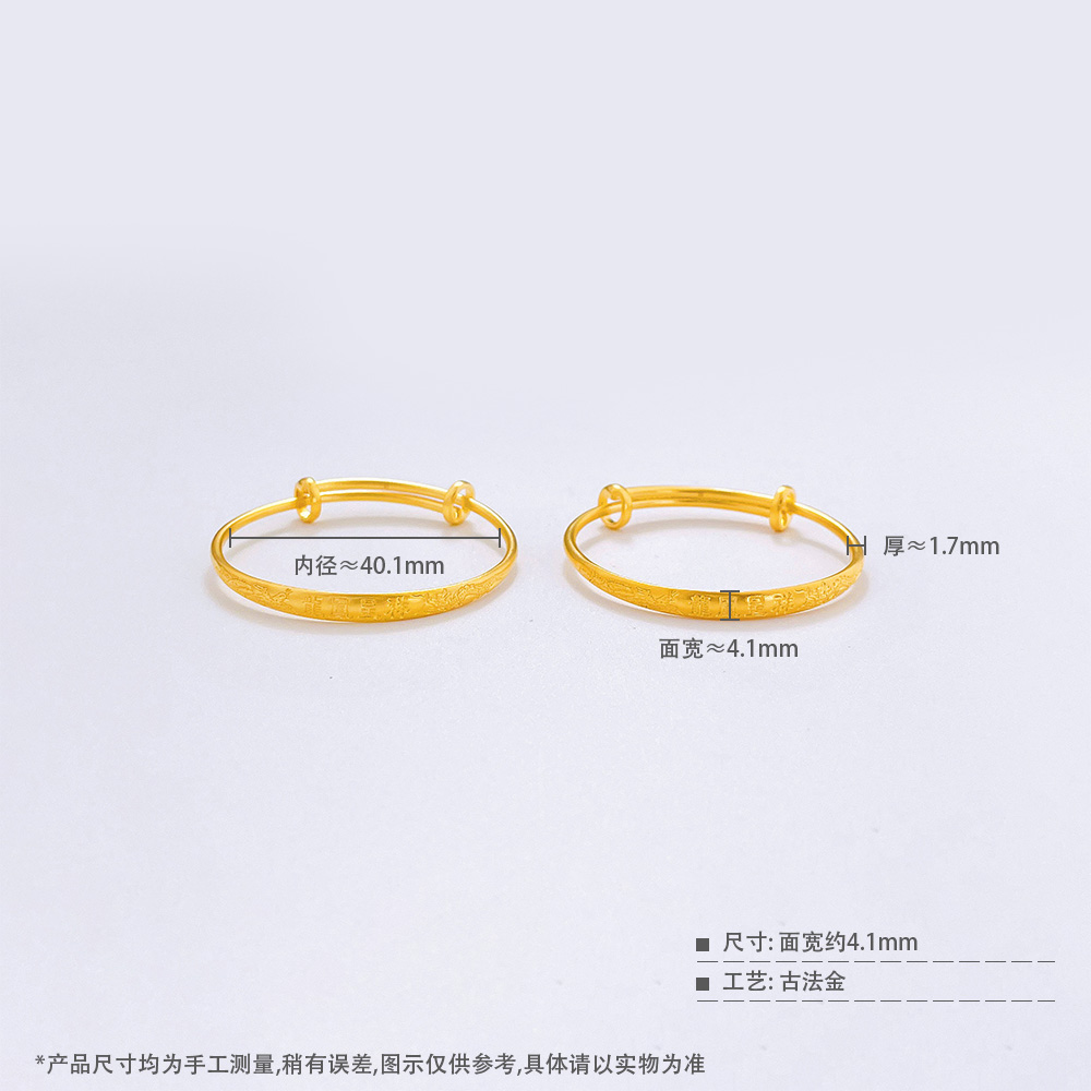 【限时克减150元】足金999 #儿童/宝宝 古法宝宝手镯龙凤呈祥推拉BB镯推拉童镯(实心)/对(YGFTZ00005)预售产品下单后不退款不退货不换货不补差价