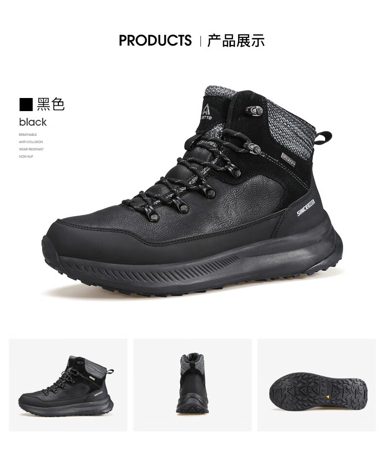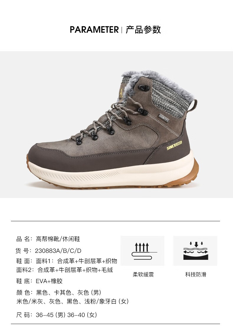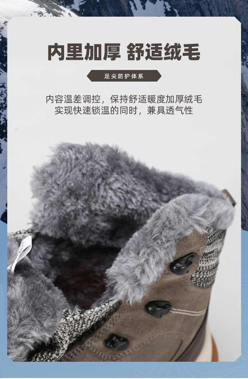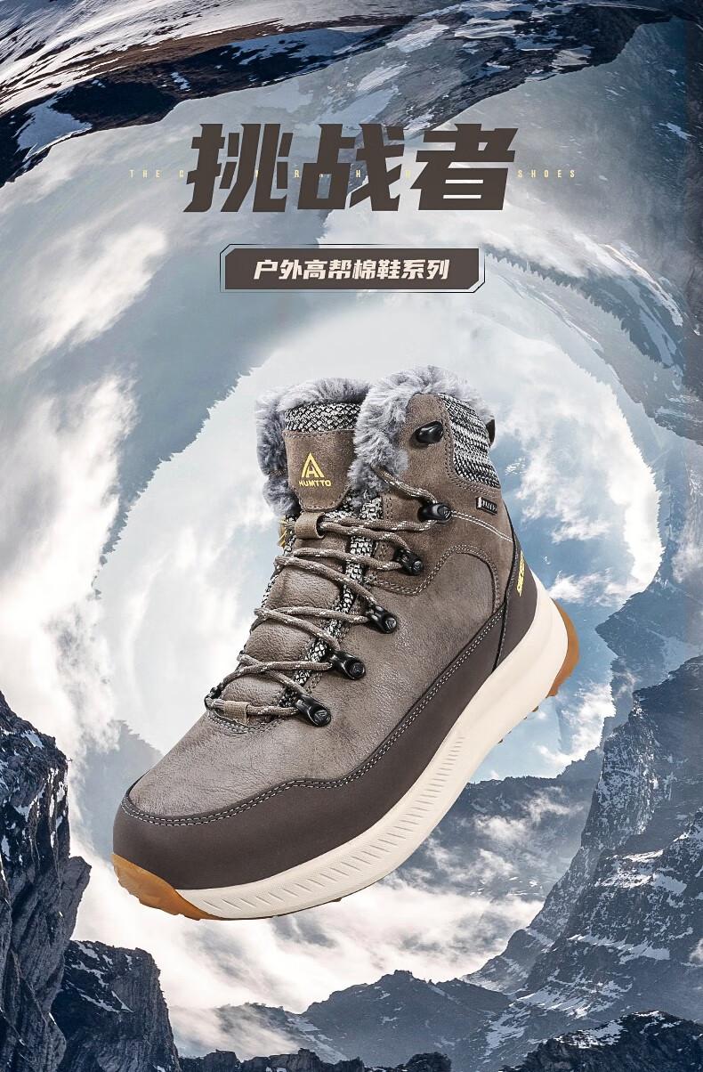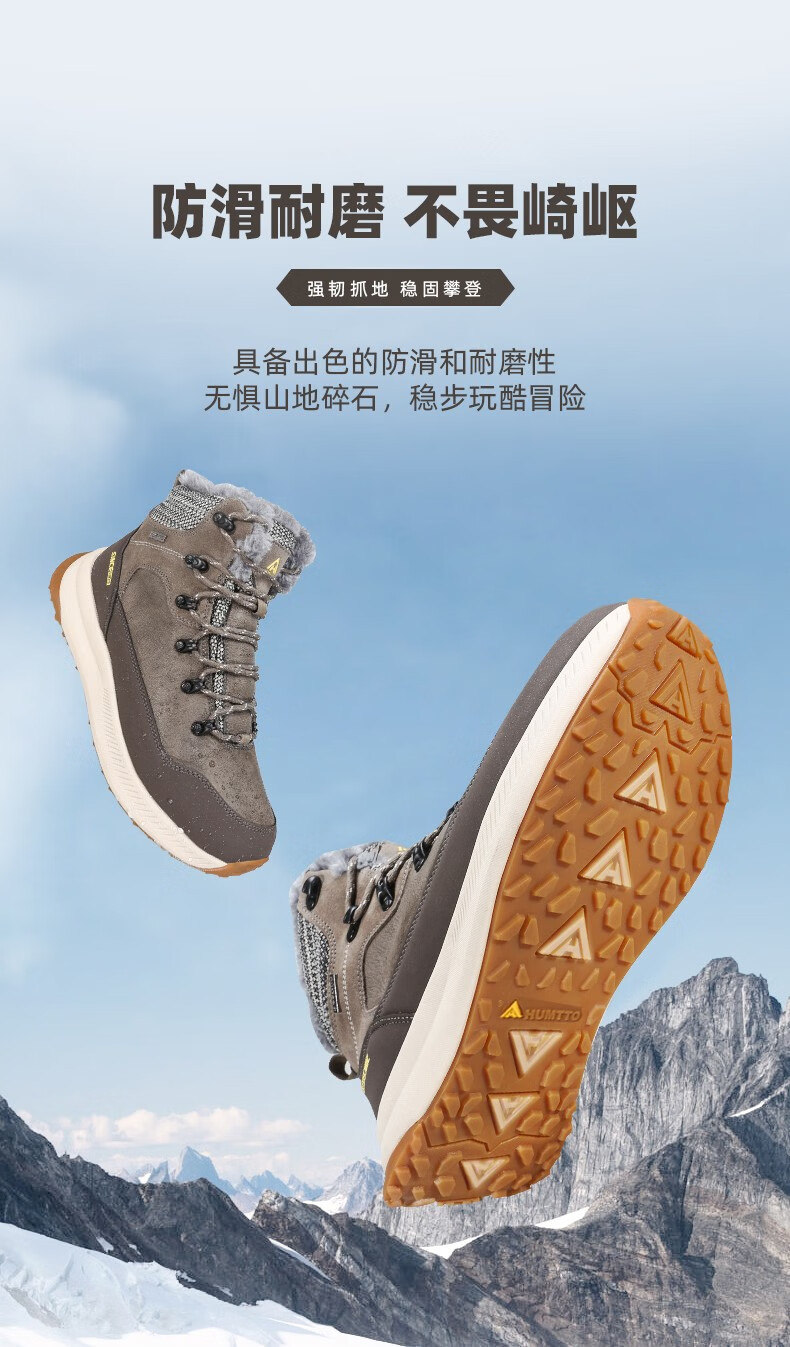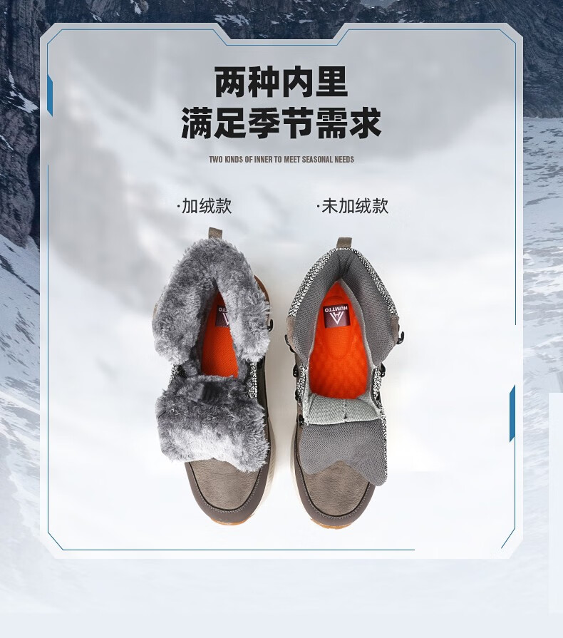 【199秒杀】悍途(HUMTTO)新款户外秋冬防滑耐磨情侣款户外高帮休闲鞋棉鞋230883