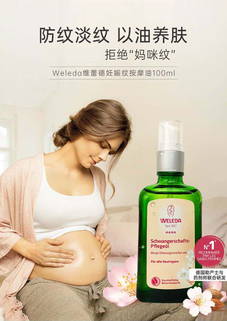 【跨境进口】Weleda维蕾德 产前产后妊娠孕身纹按摩油 肥胖纹 植物油好吸收 100ml