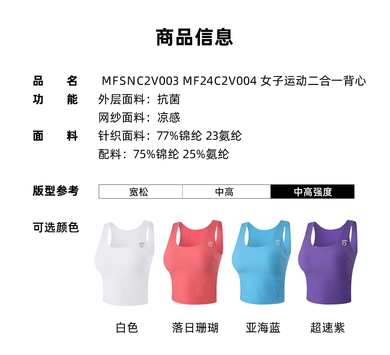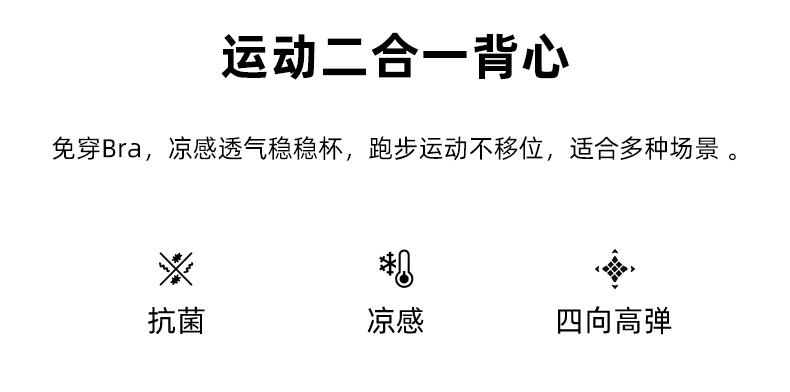 春夏马孔多女子二合一背心 运动文胸 自带3D凉感呼吸杯 免穿Bra 元气U领 工字美背 高效排汗 运动不移位 3A级抗菌 清爽不留异味