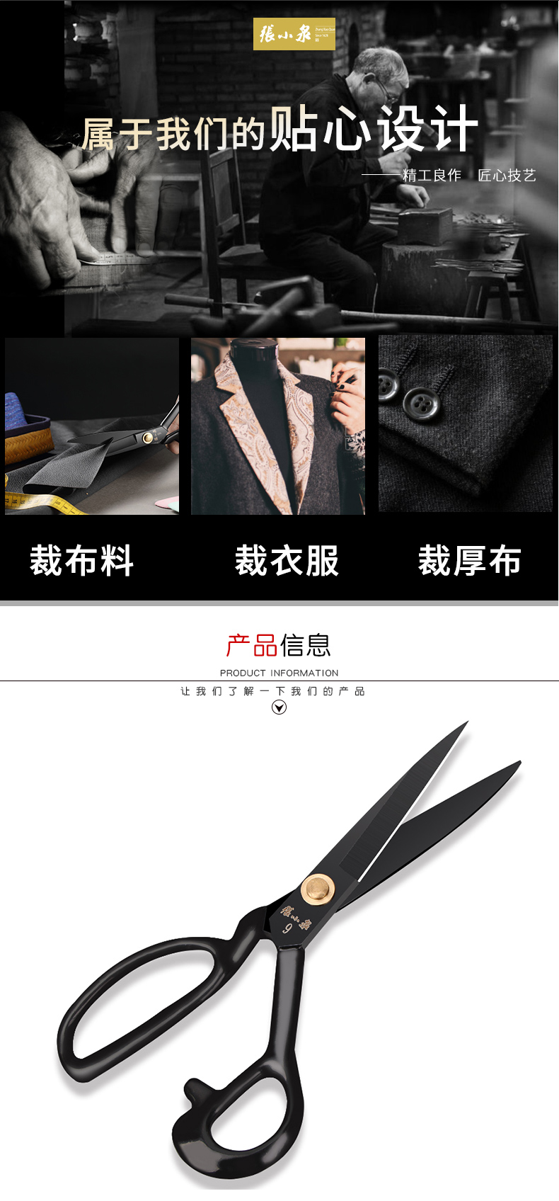 黑钢版张小泉裁缝剪刀锰钢裁布大剪刀剪裁缝纫加强服装剪耐磨剪刀