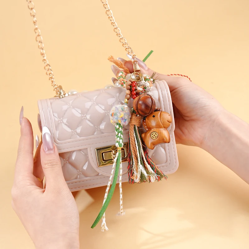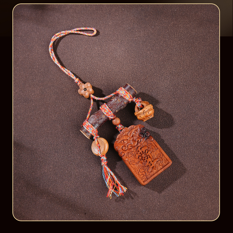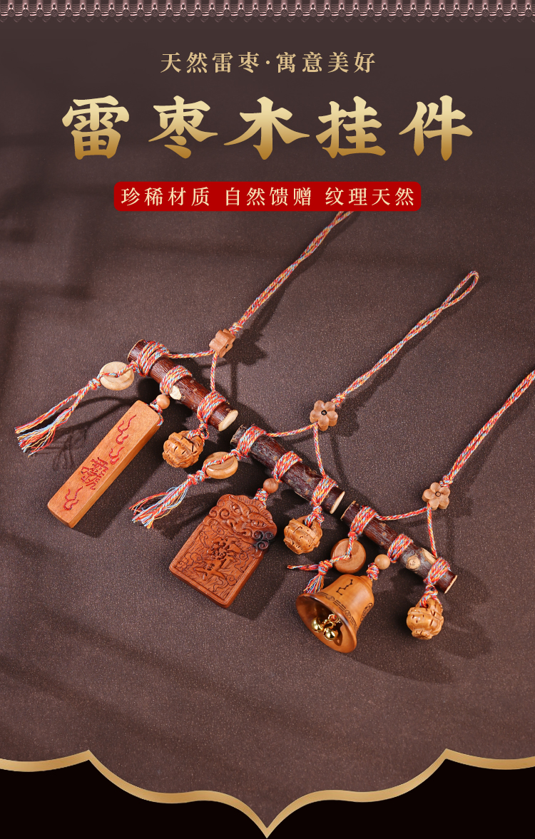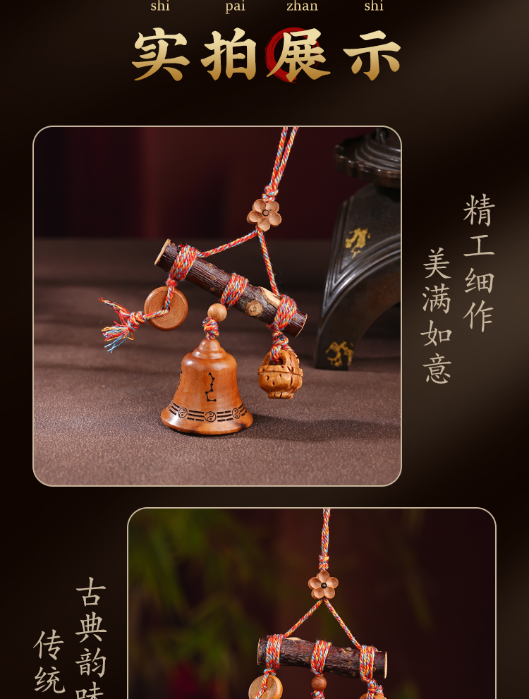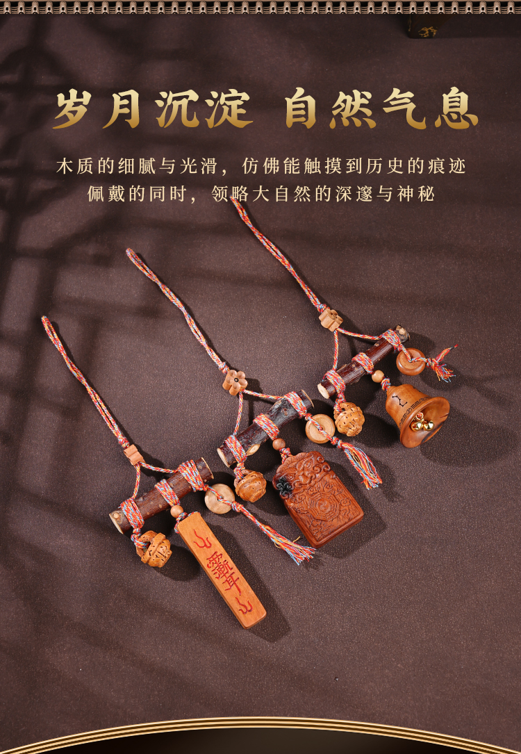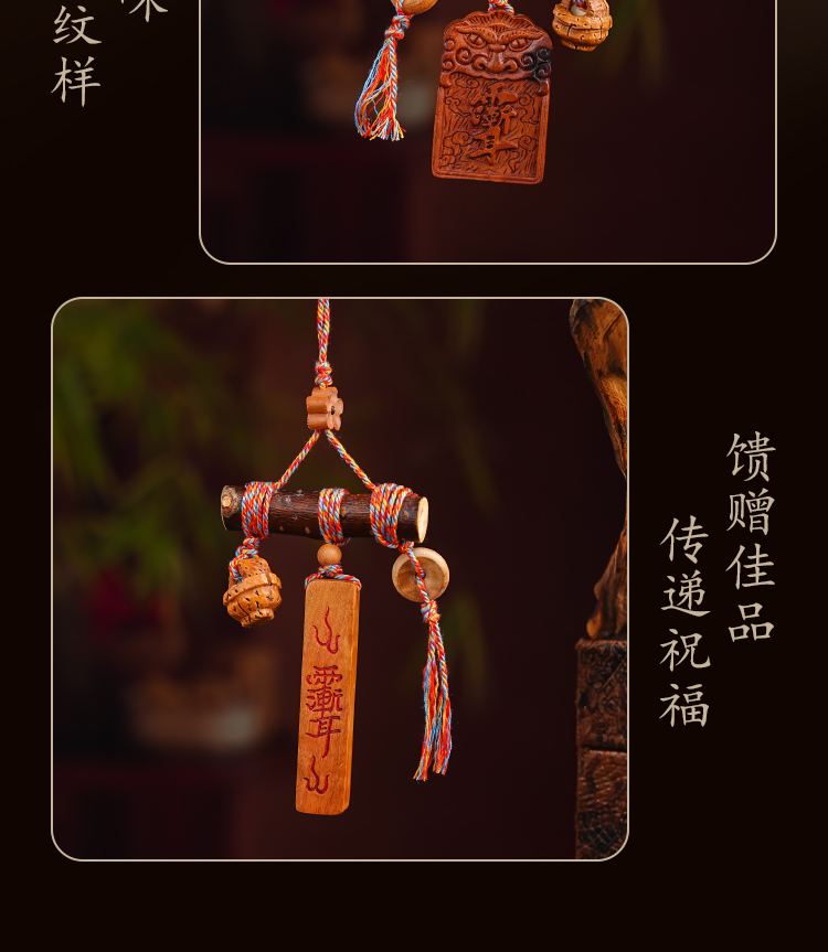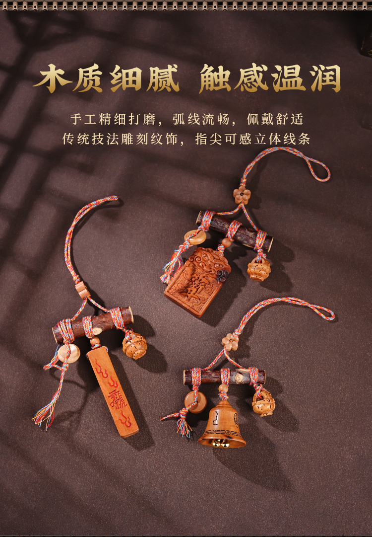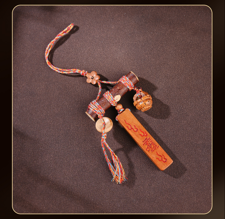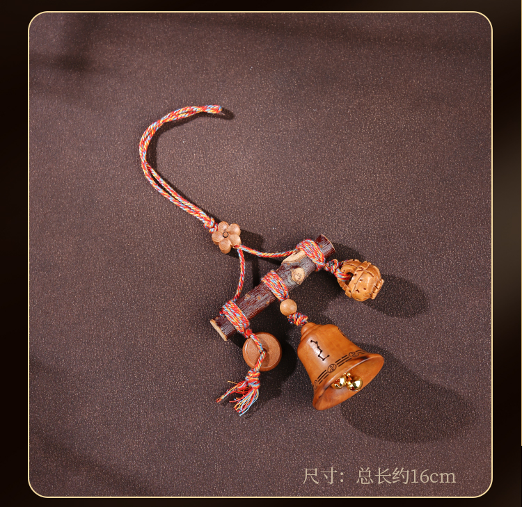 国风中式雷击木铃铛桃木棍挂件天然桃木儿童平安多宝包挂饰品