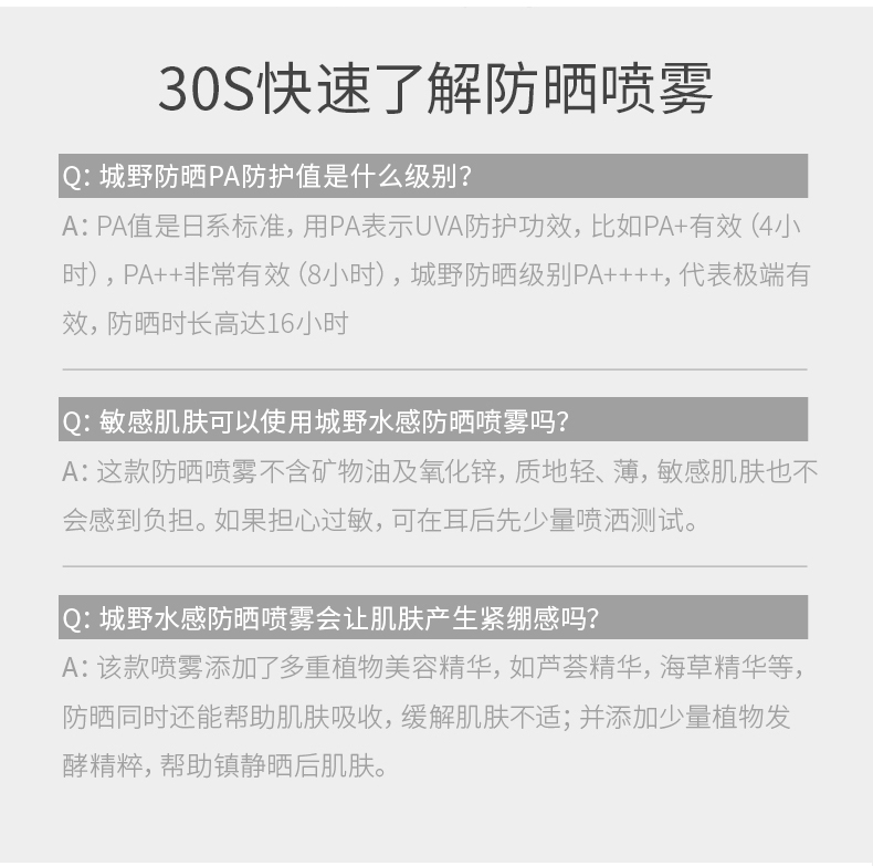 城野医生防晒喷雾夏清爽不油腻面部隔离紫外线防晒霜100g