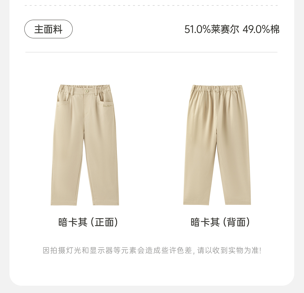 英氏儿童裤子春夏百搭女童休闲裤2025新款透气长裤YRKCJ1R033A