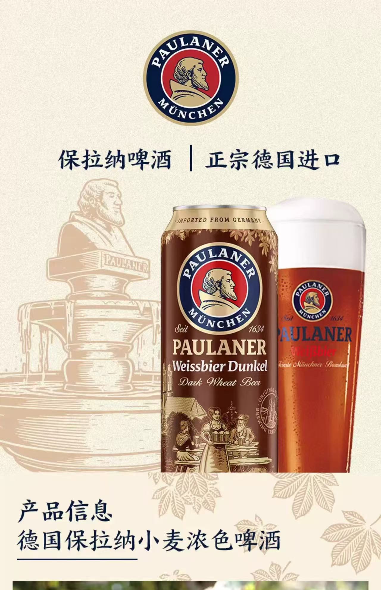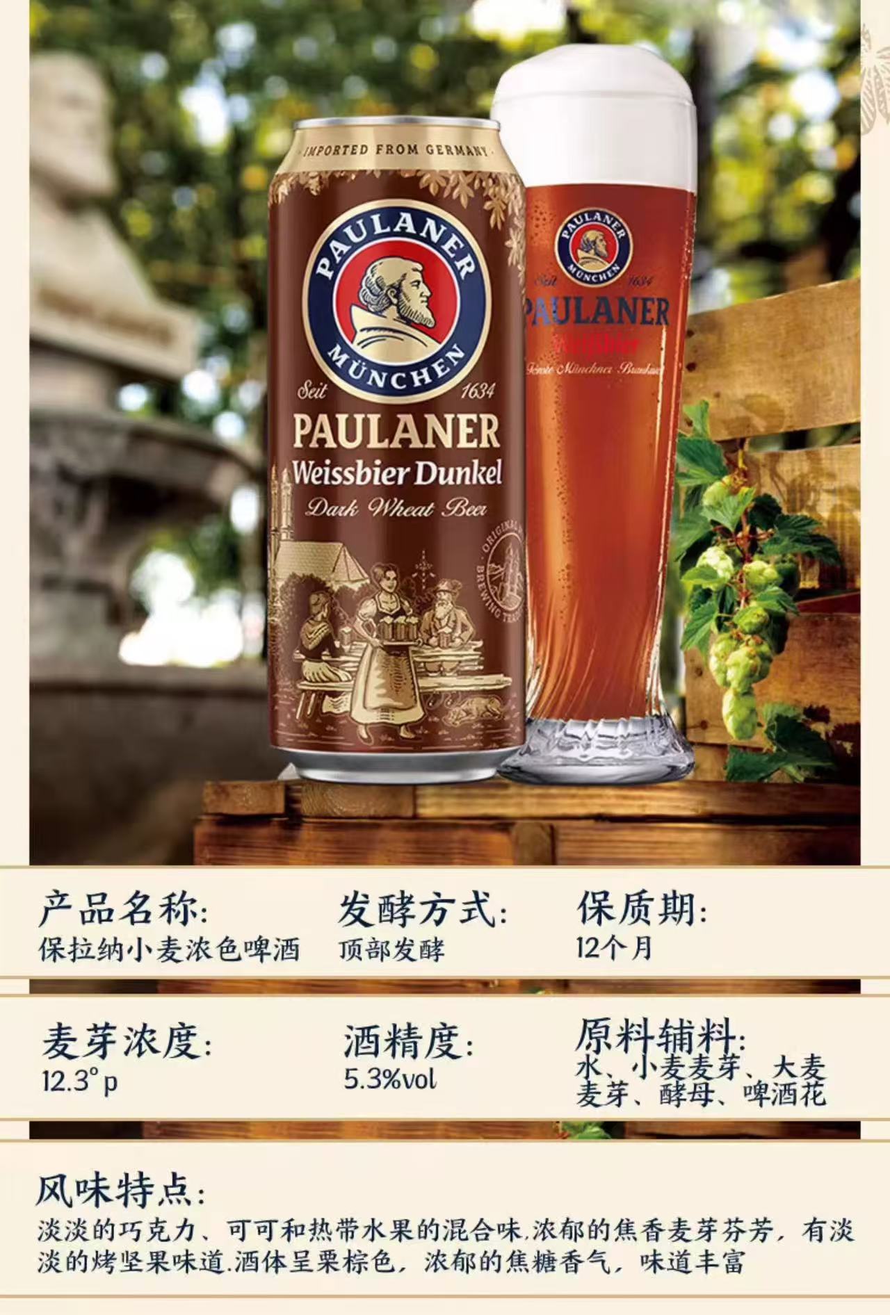 德国保拉纳小麦浓色啤酒(柏龙黑啤) 酒精度:5.3° 麦芽度:12.3°