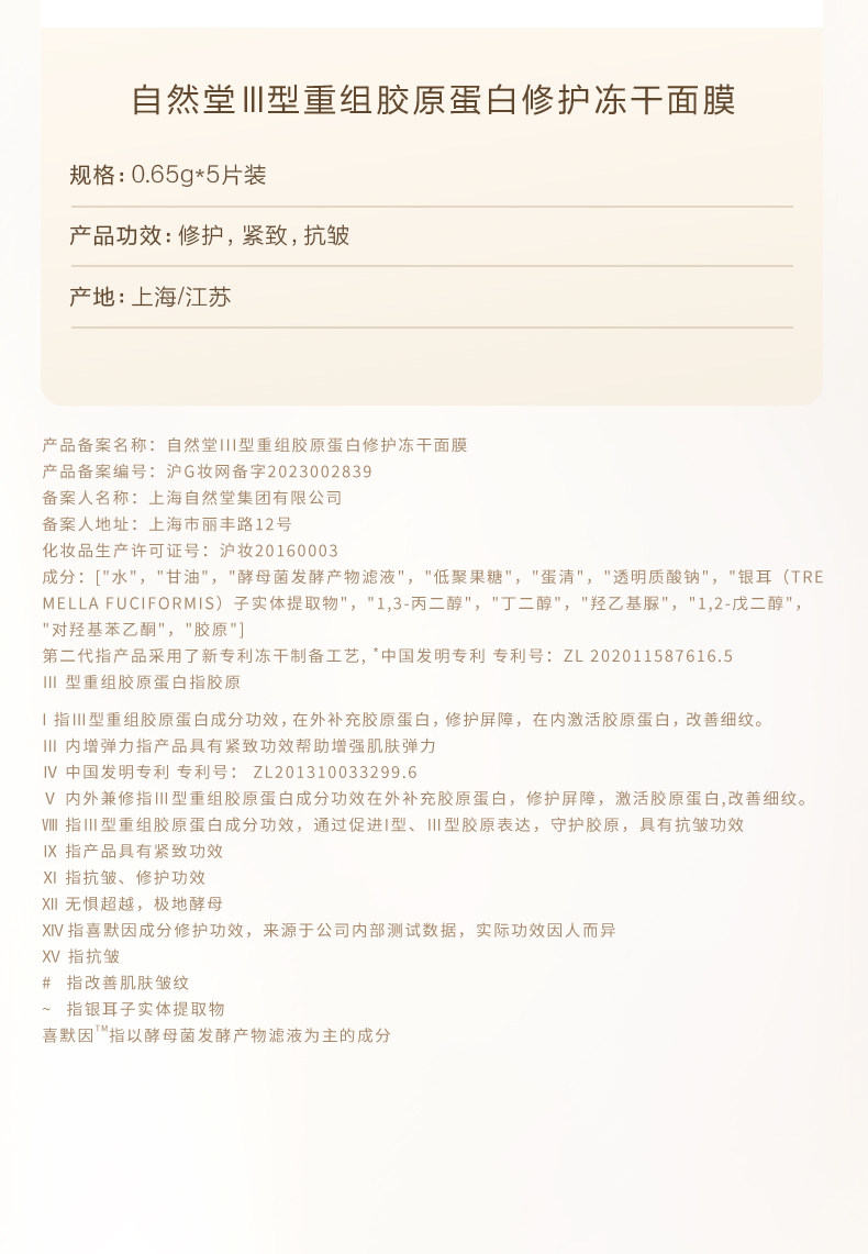 自然堂敏感肌重组胶原蛋白冻干面膜 修护敏感补水保湿特护面膜