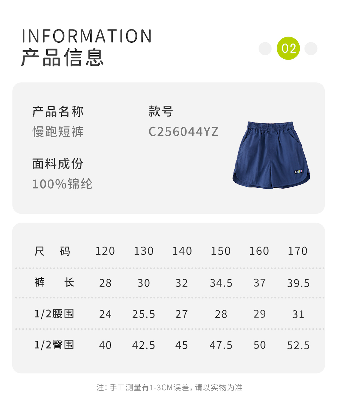 【代发】女童慢跑短裤 cicochild夏季款户外轻薄透气休闲运动裤子藏青
