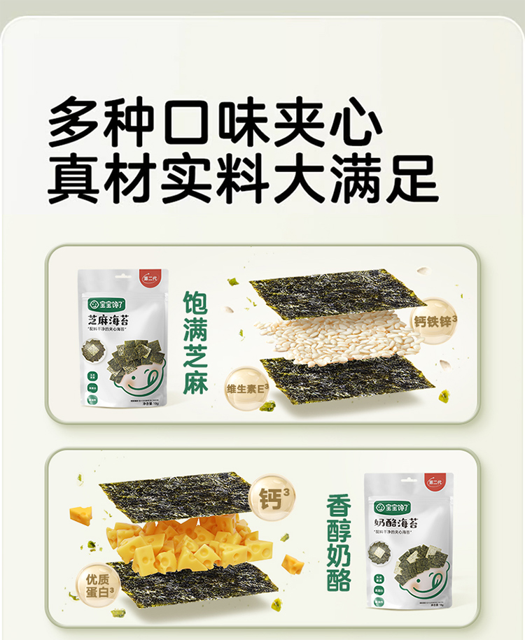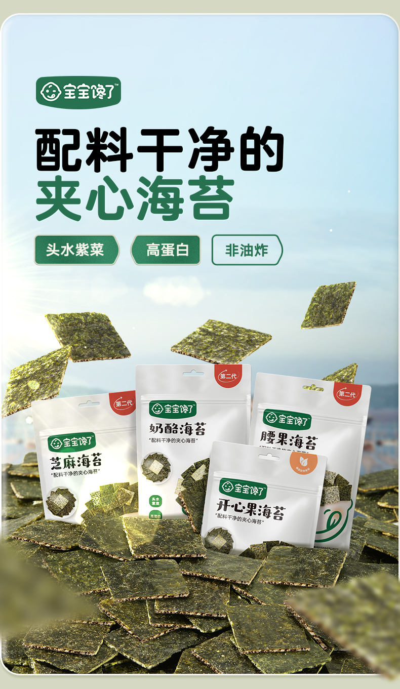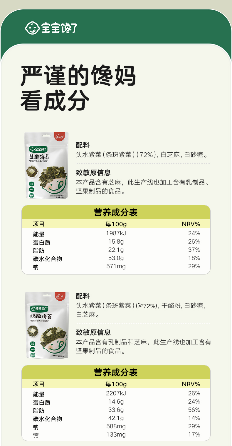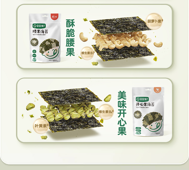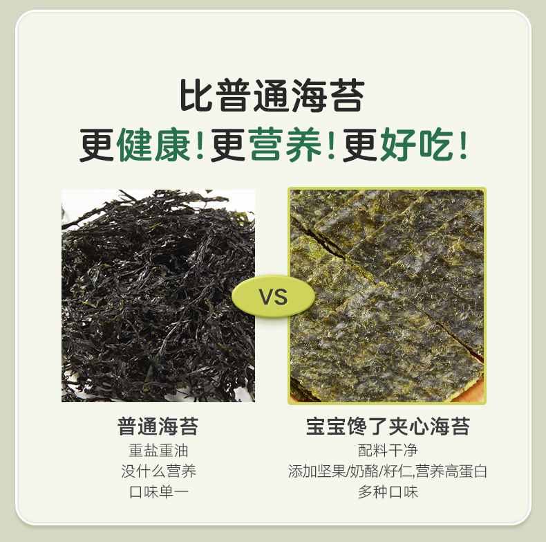 【宝宝馋了】【3袋装】海苔(芝麻/奶酪/腰果/坚果)不添加盐 送12月+婴幼儿食谱