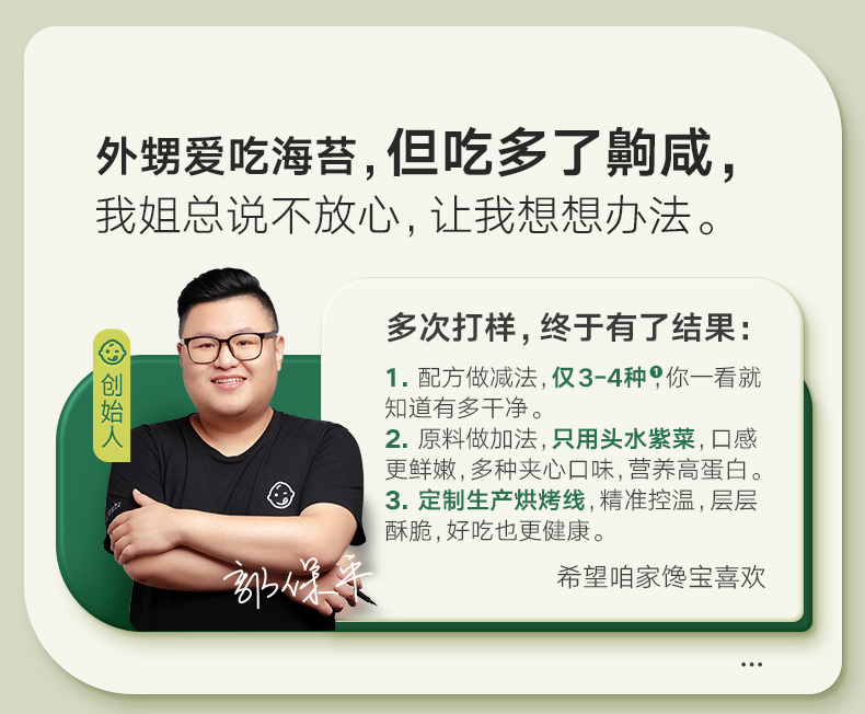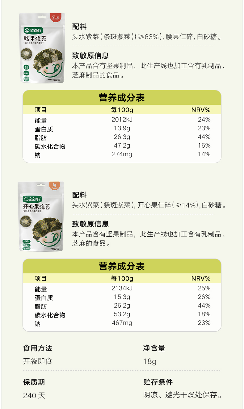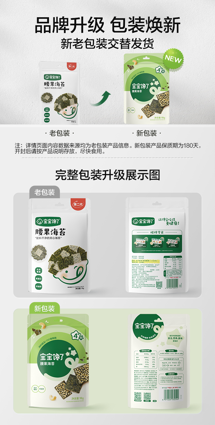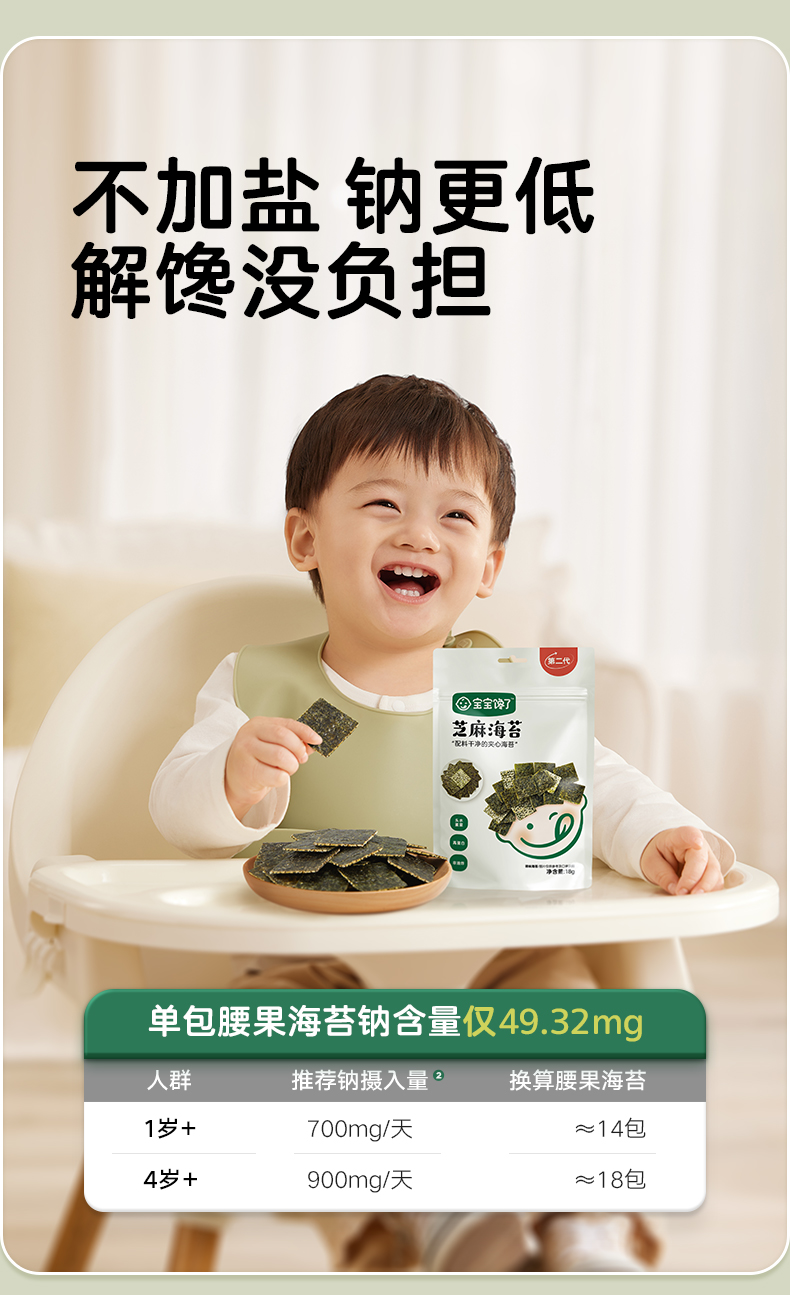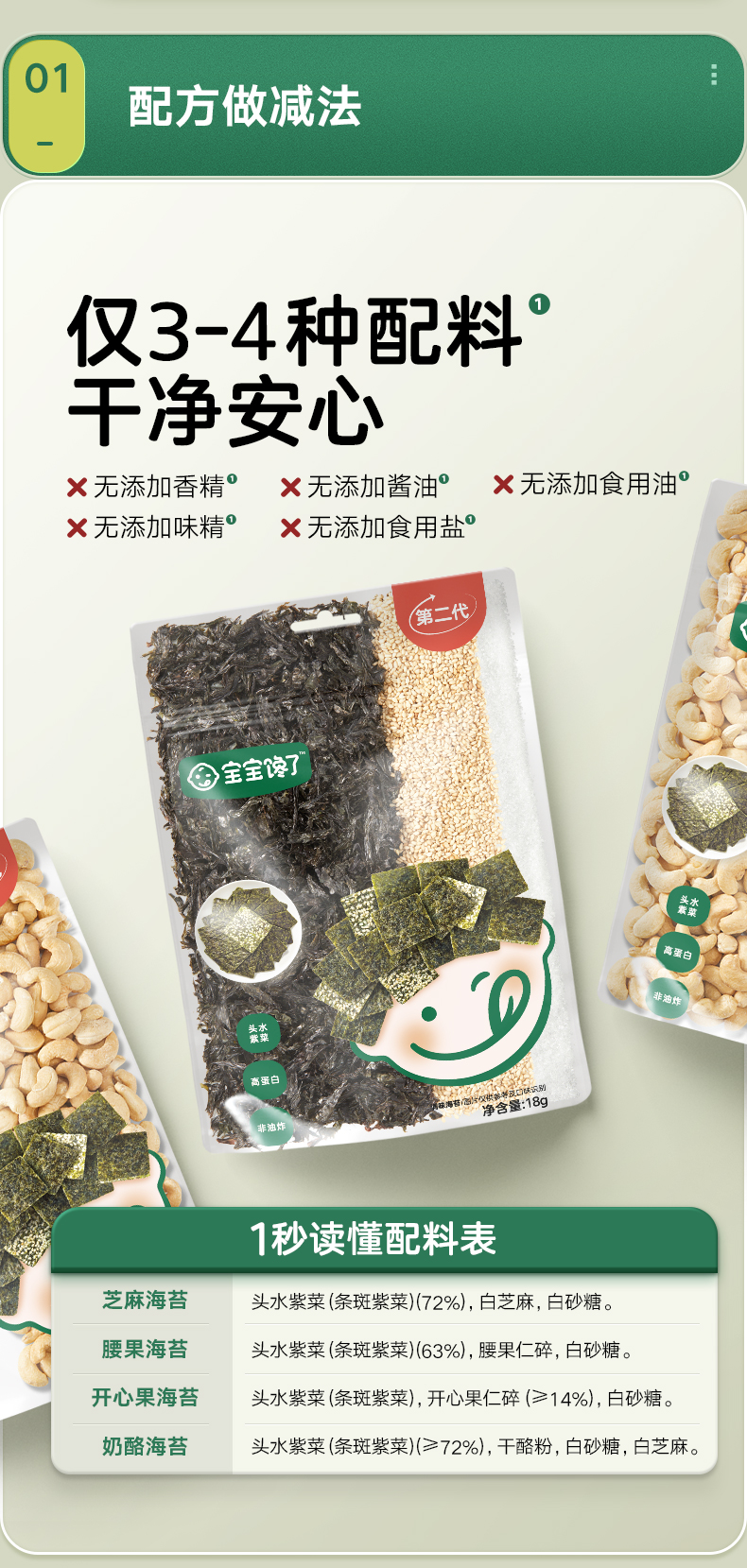 【宝宝馋了】【3袋装】海苔(芝麻/奶酪/腰果/坚果)不添加盐 送12月+婴幼儿食谱