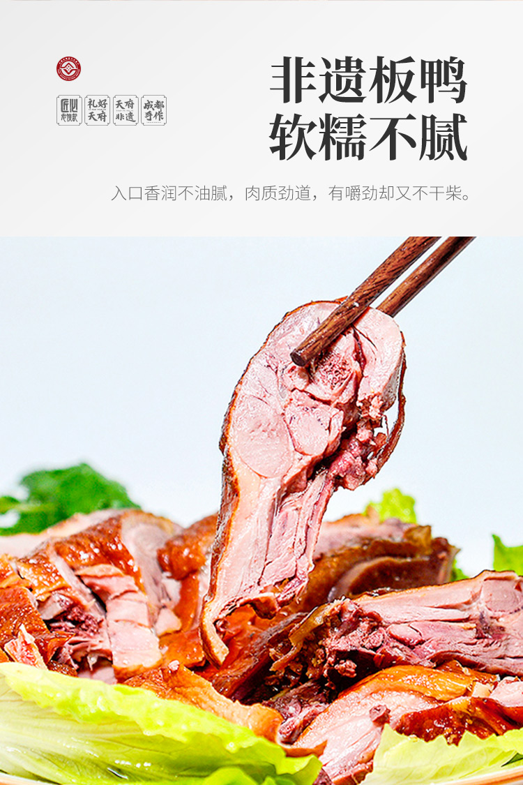 ②非遗板鸭为熟食,开袋即食,建议加热食用(冷藏保存后必须加热30秒以上食用);