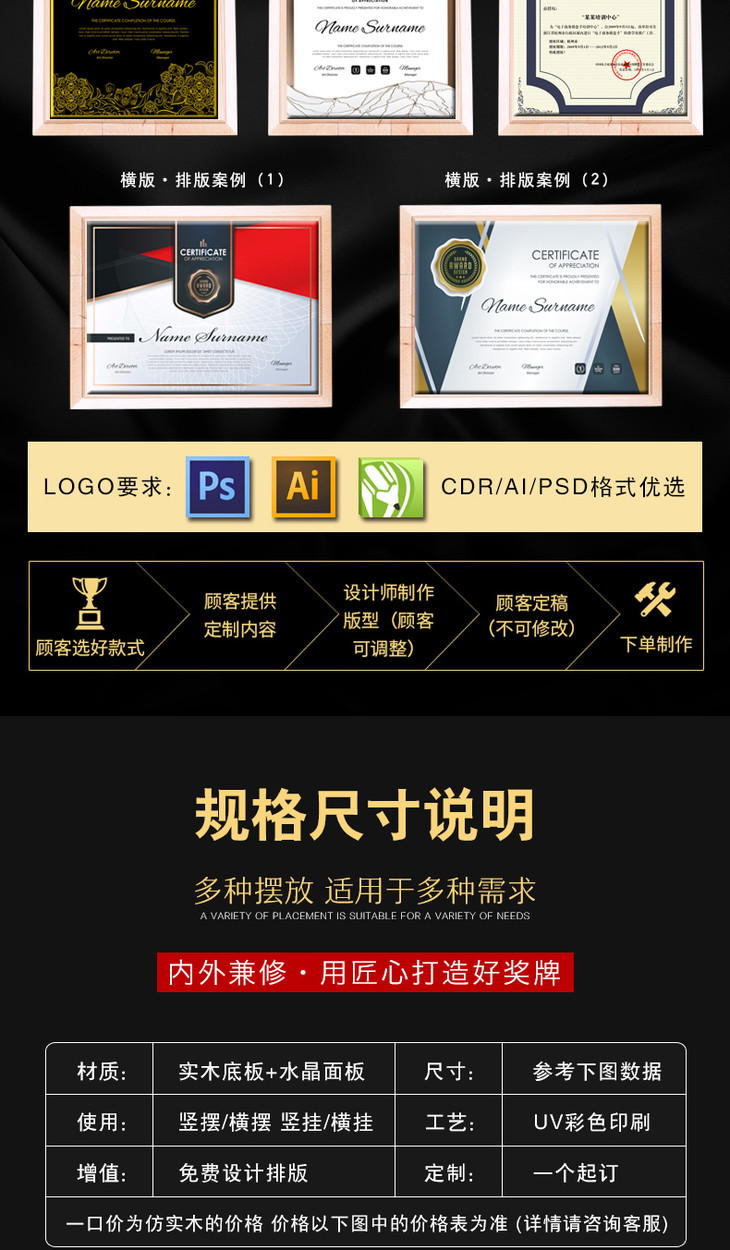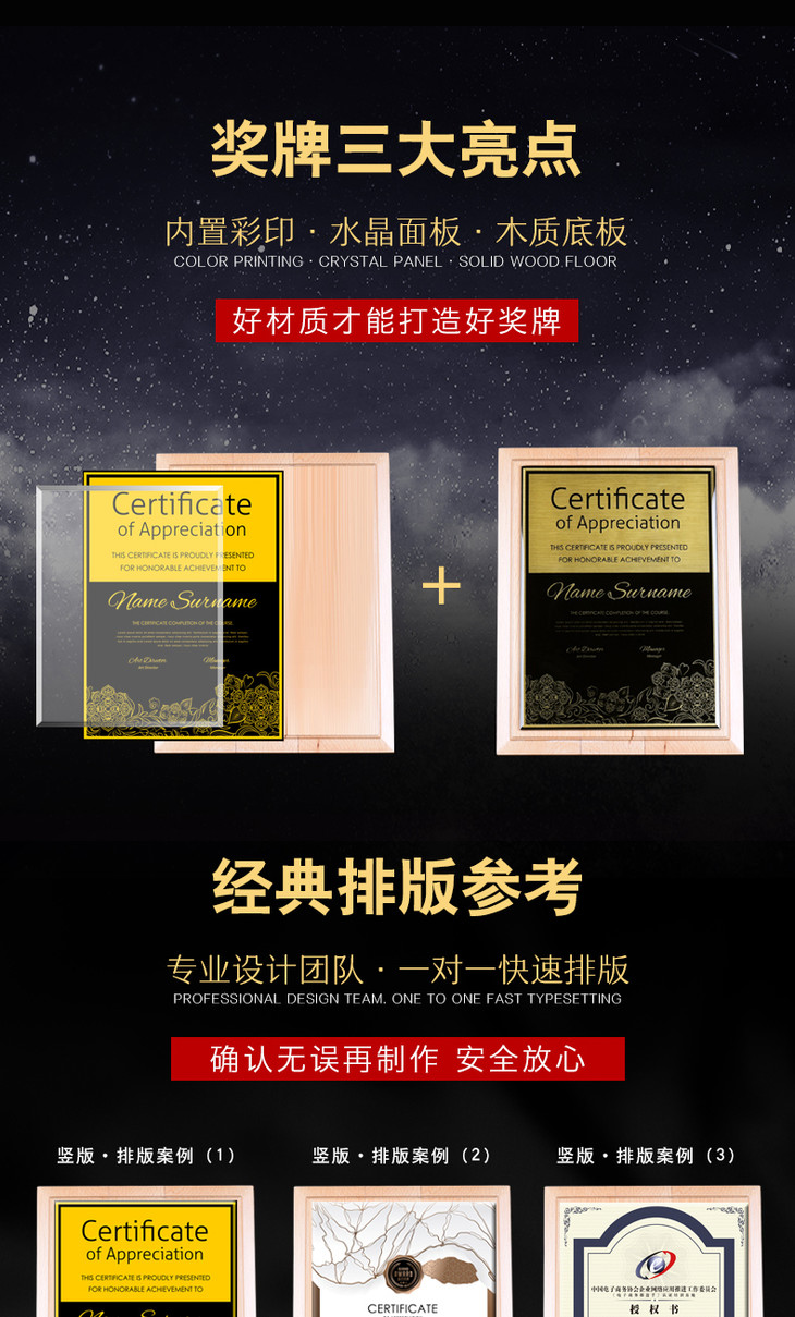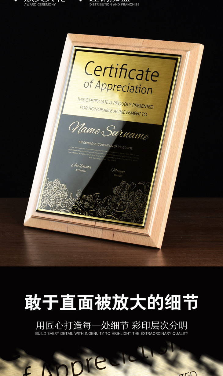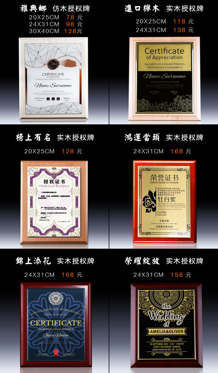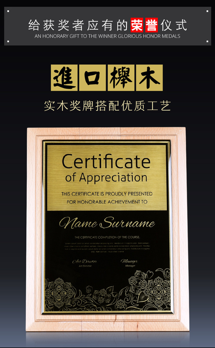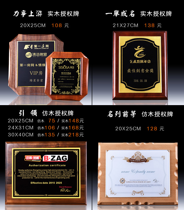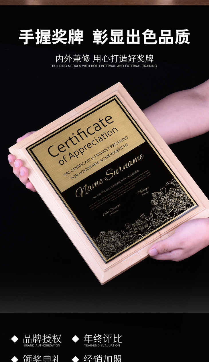 奖牌定制定做 授权牌 纪念牌荣誉牌牌匾定制证书制作木质高档聘书