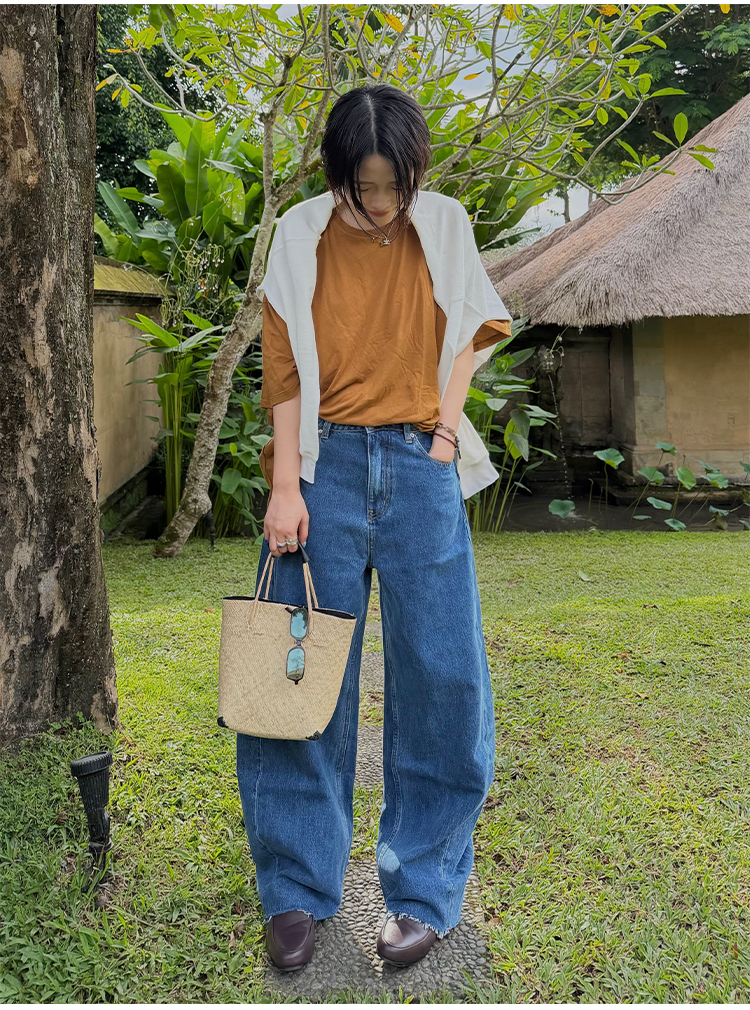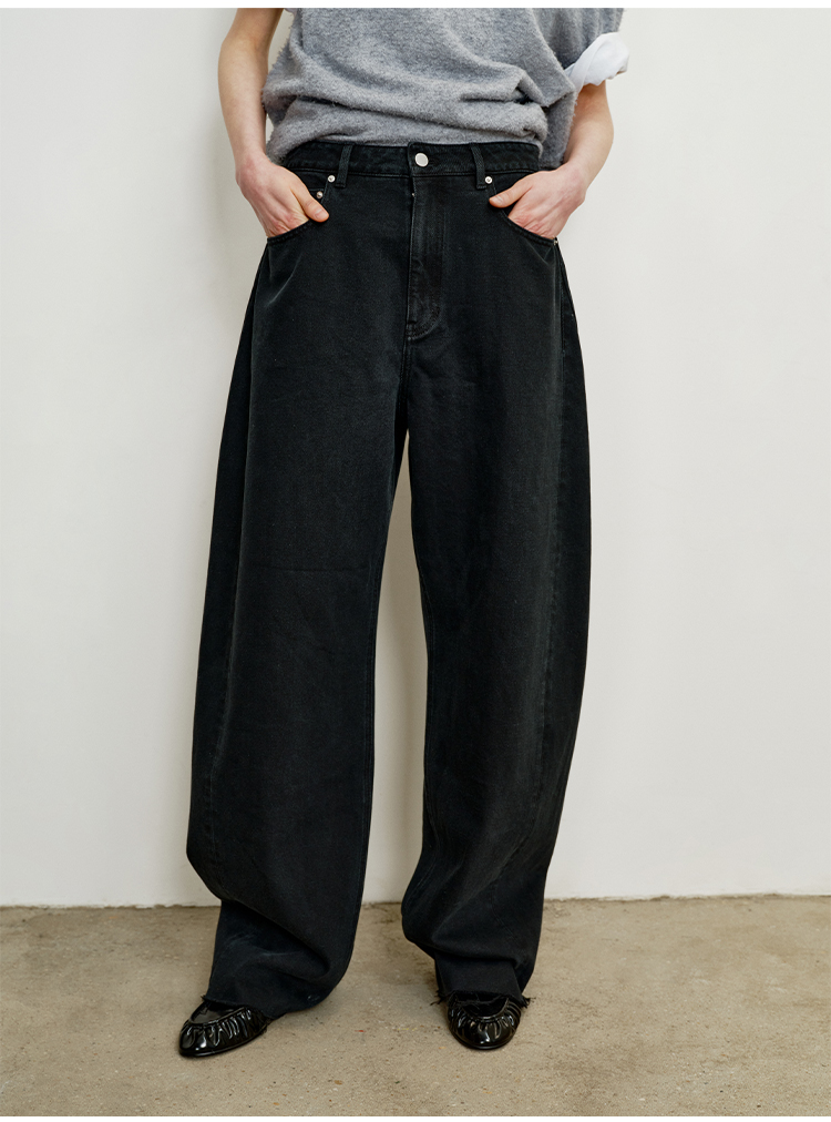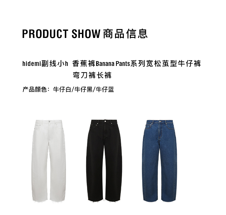 hidemi副线小h 香蕉裤Banana Pants系列宽松毛边茧型牛仔裤弯刀裤长裤