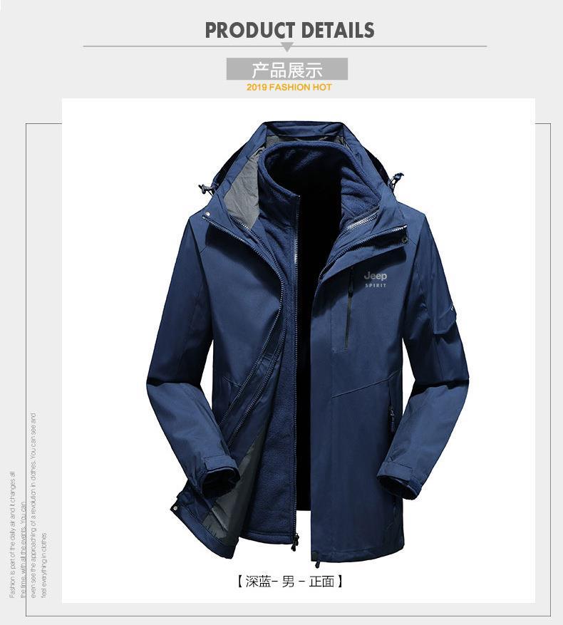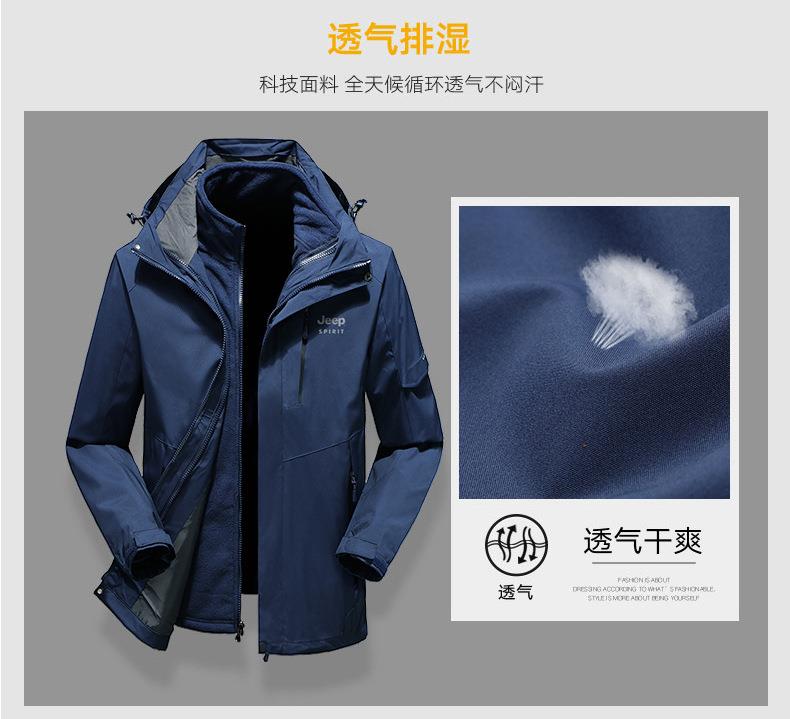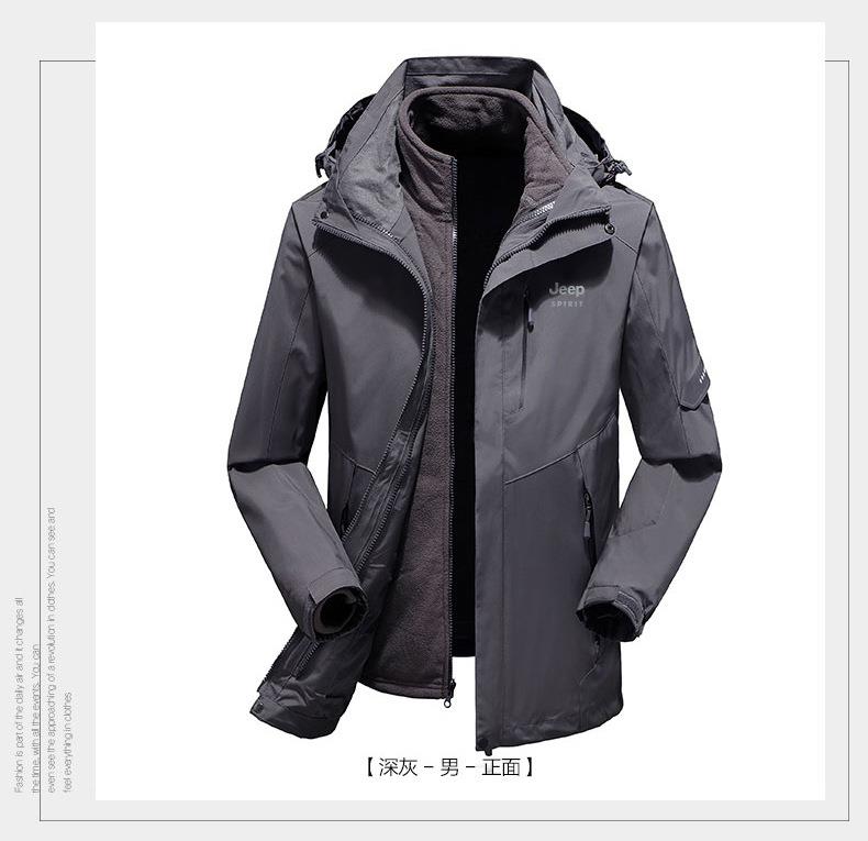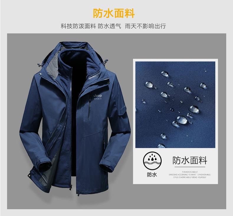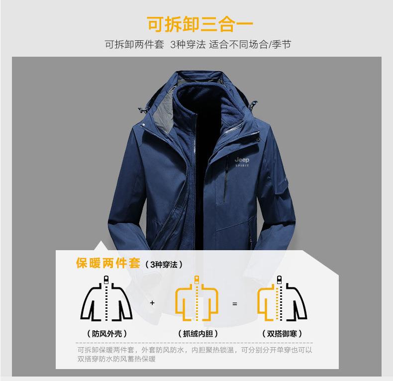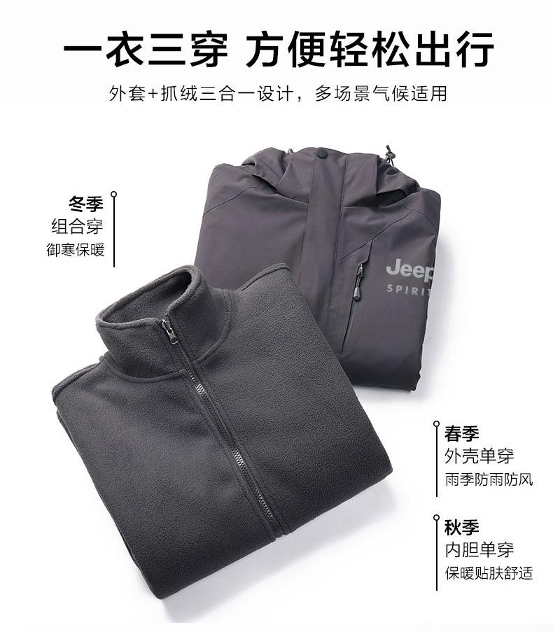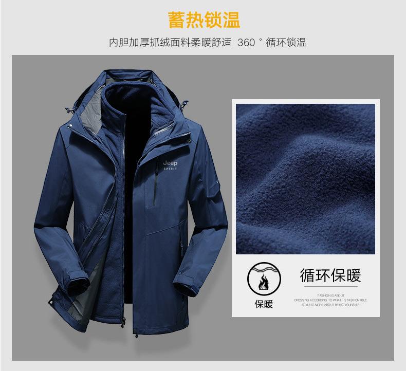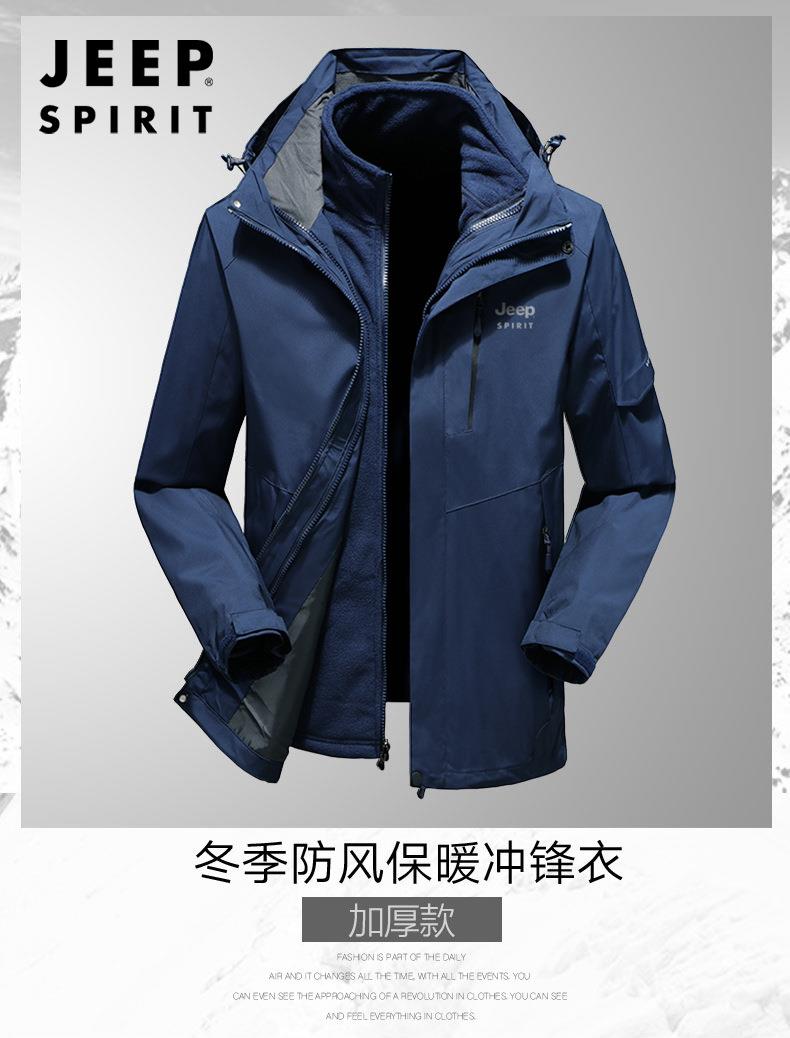JEEP SPIRIT户外冲锋衣男秋冬两件套加绒加厚防风防水外套HL9901