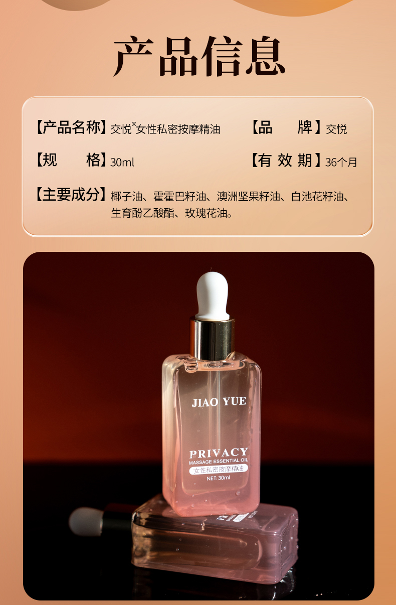 交悦女性私密按摩精油 多重天然植物精粹 轻盈润滑 滋养保湿 一瓶多用 30ml/瓶