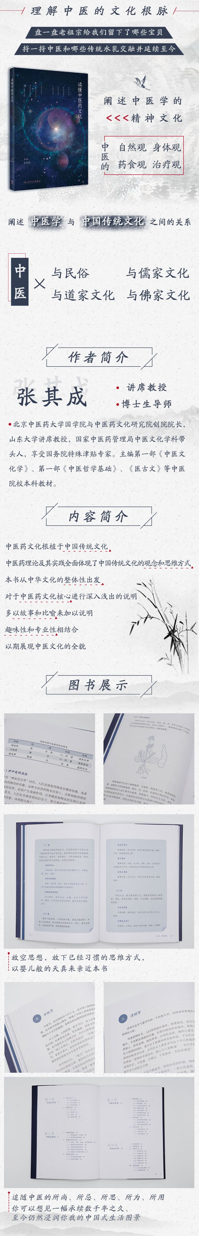 中医药文化根植于中国传统文化,中医药理论及其实践全面体现了中国传统文化的观念和思维方式。本书从中华文化的整体性出发,对于中医药文化进行深入浅出的说明,在语言表达上尽量以故事和比喻来加以说明,具有趣味性和专业性相结合的特点。内容主要包括中医药文化的内涵:包括中医自然观、中医身体观、中医药食观和中医治疗观;中医文化与儒释道:包括中医与民俗、中医与儒家、道家和佛家。在语言表达上,尽量以故事和比喻来加以说明,具有趣味性和专业性相结合的特点。适合中医爱好者及普通大众阅读。