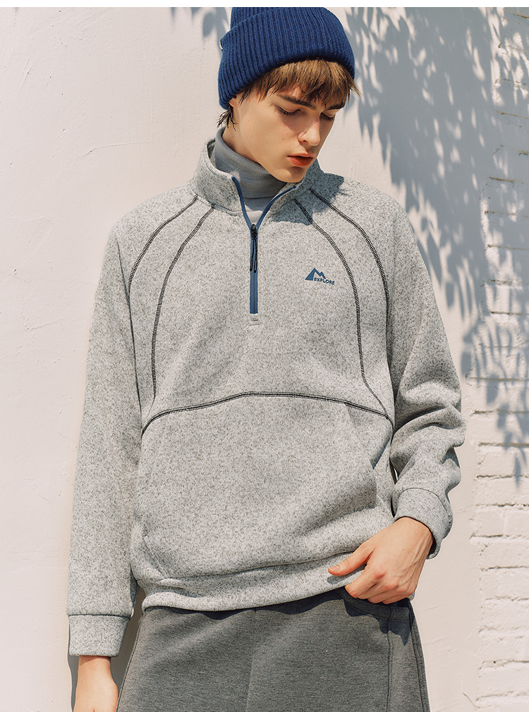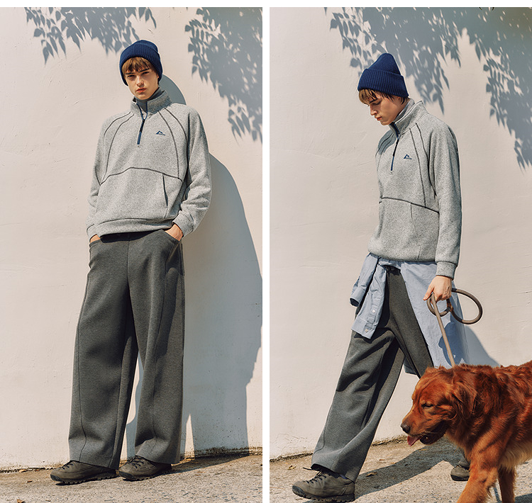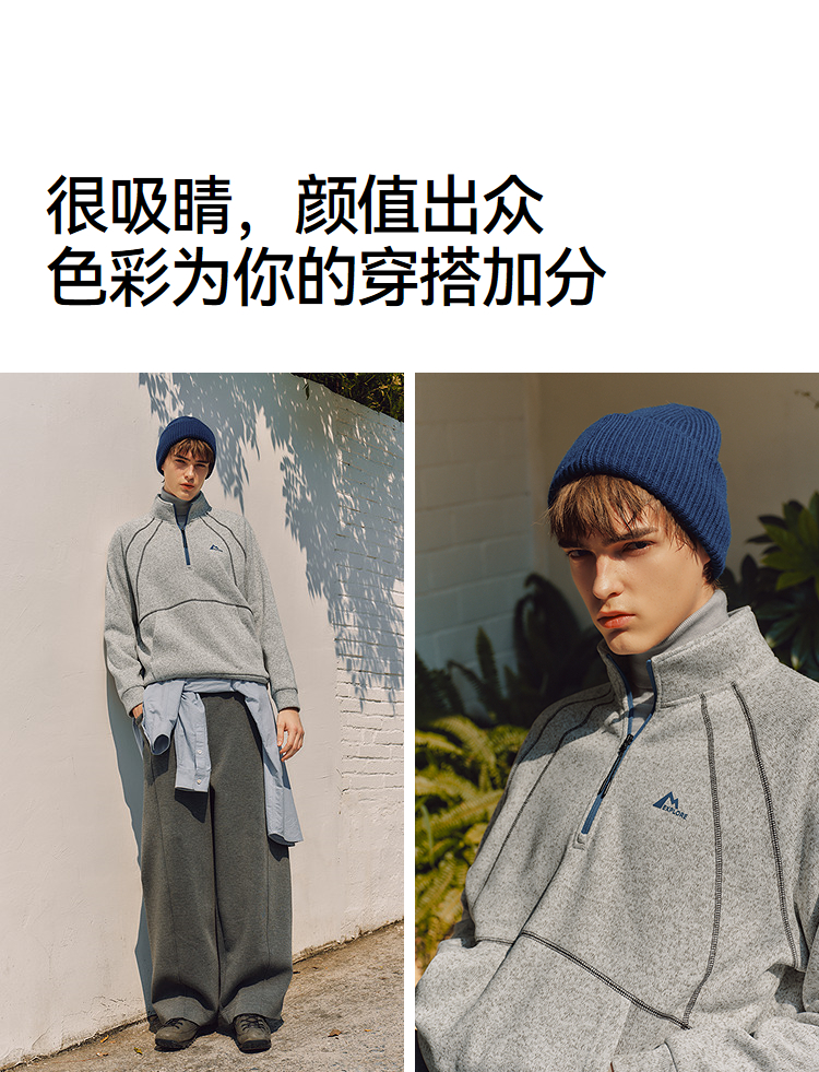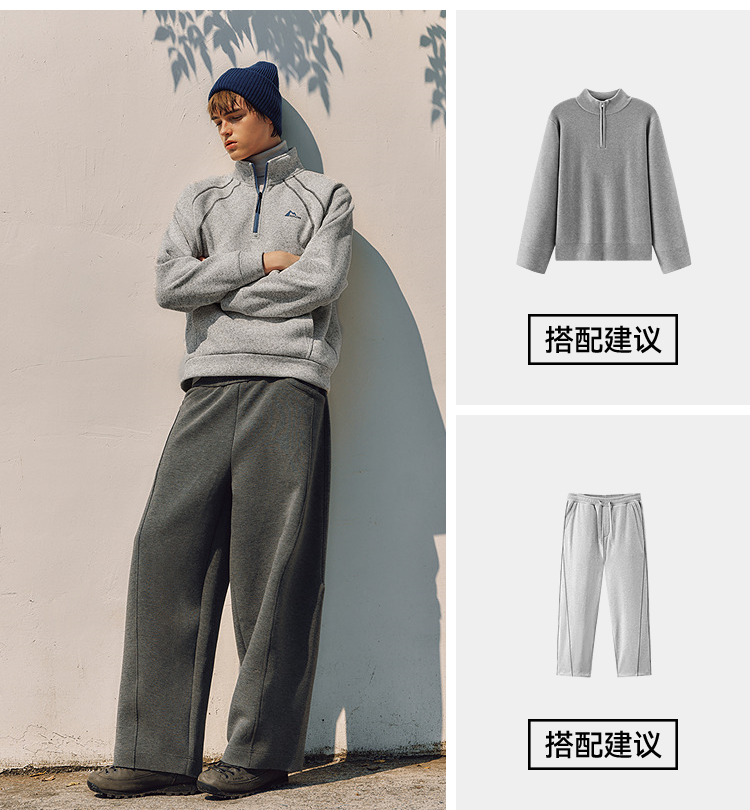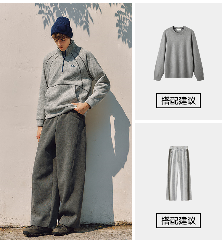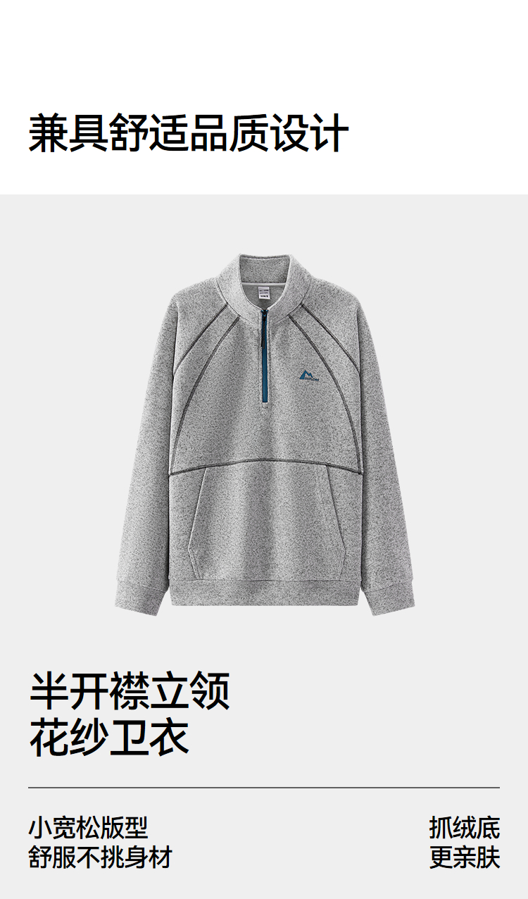森马卫衣男冬季花纱半开襟立领上衣2025新款运动风撞色印花套头衫