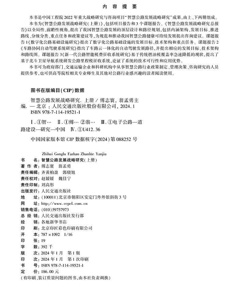 书名:智慧公路发展战略研究(上册)