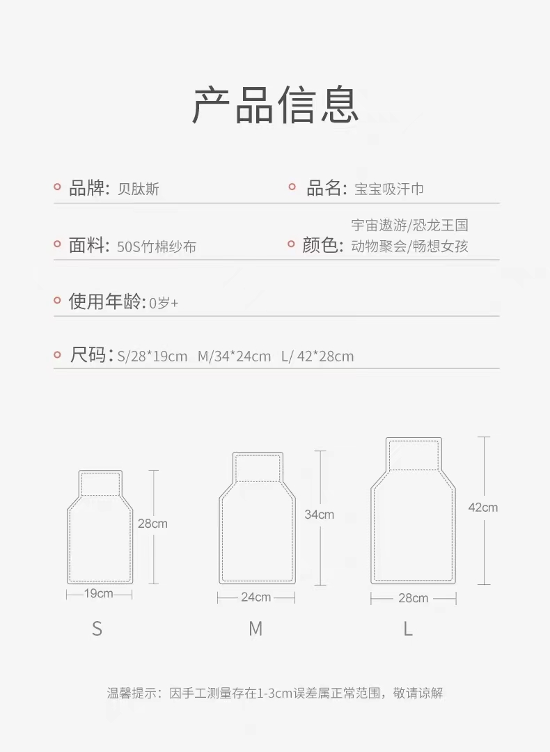 【贝肽斯】吸汗巾儿童大号幼儿园宝宝垫背隔汗巾