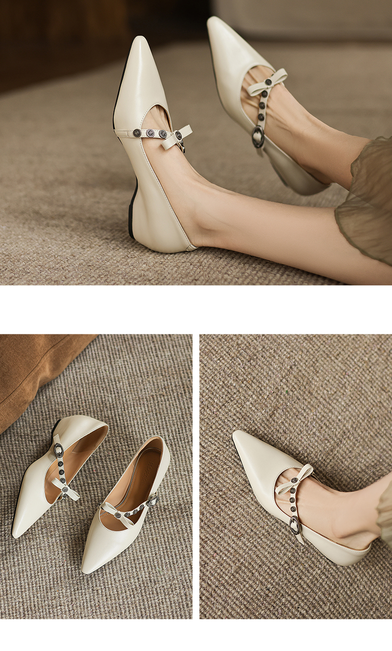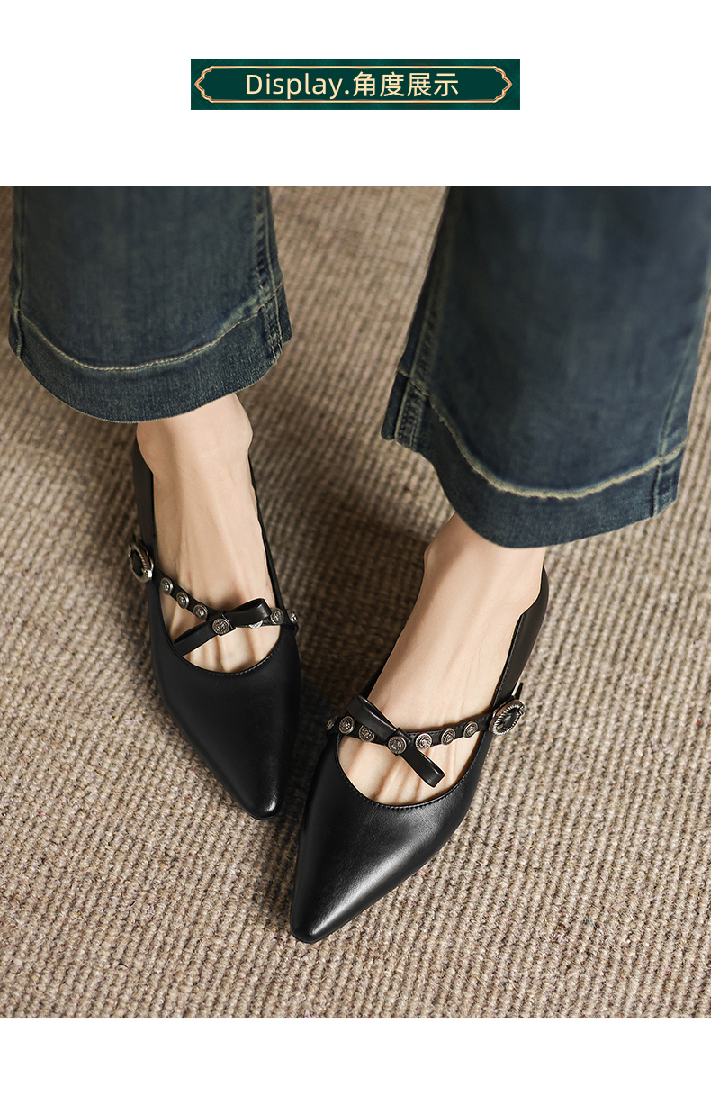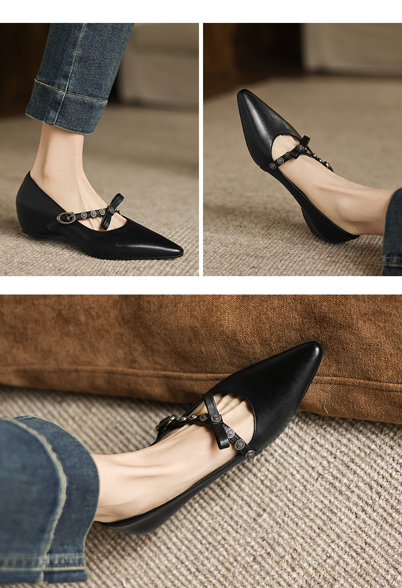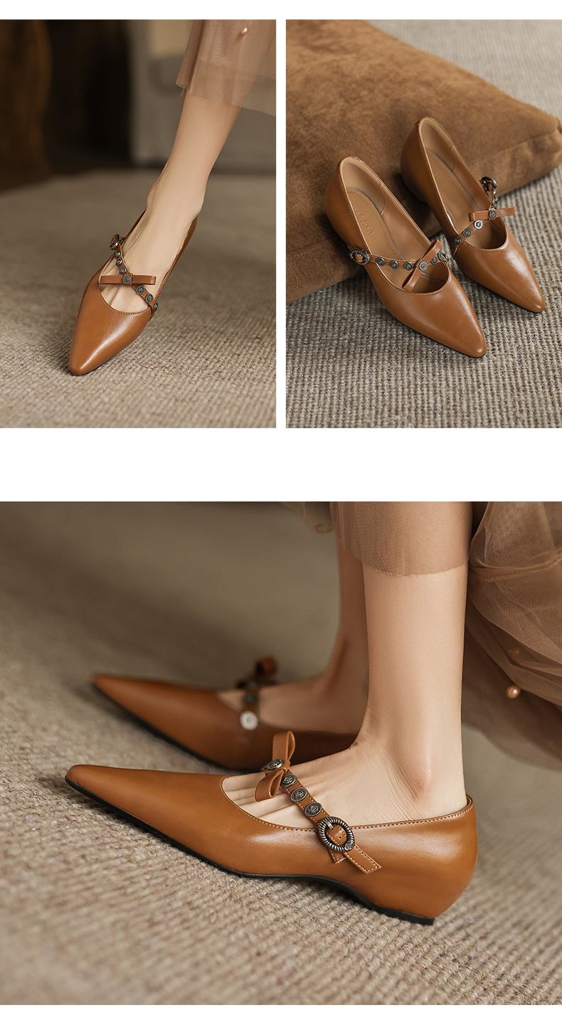 阿么手工女鞋法式一字带玛丽珍鞋真皮2025新款内增高浅口单鞋3CM