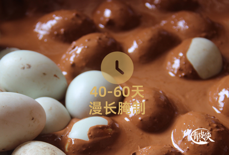 这款鸭蛋降低盐使用量,延长腌制时间,大概使用40-60天裹泥腌制,相对来说是低盐的。