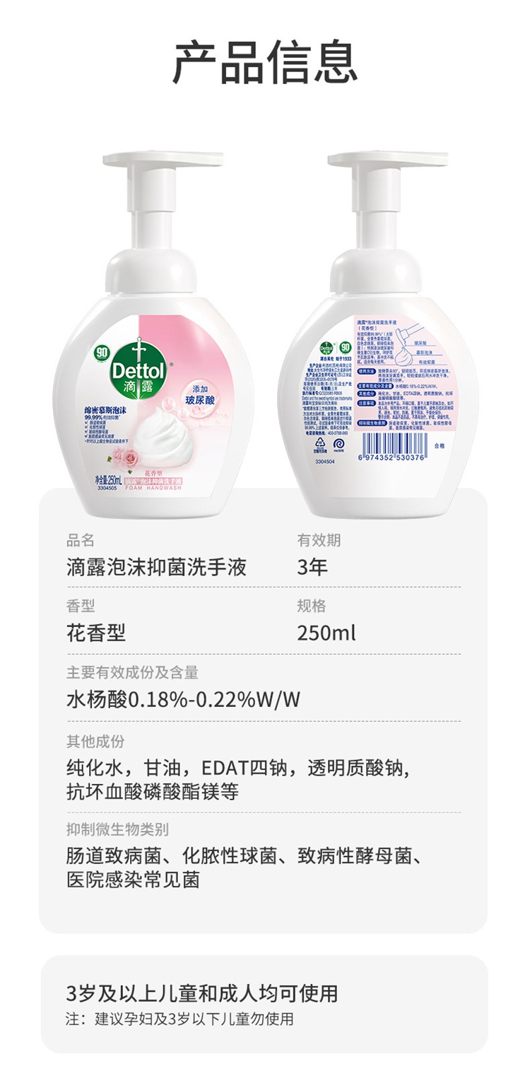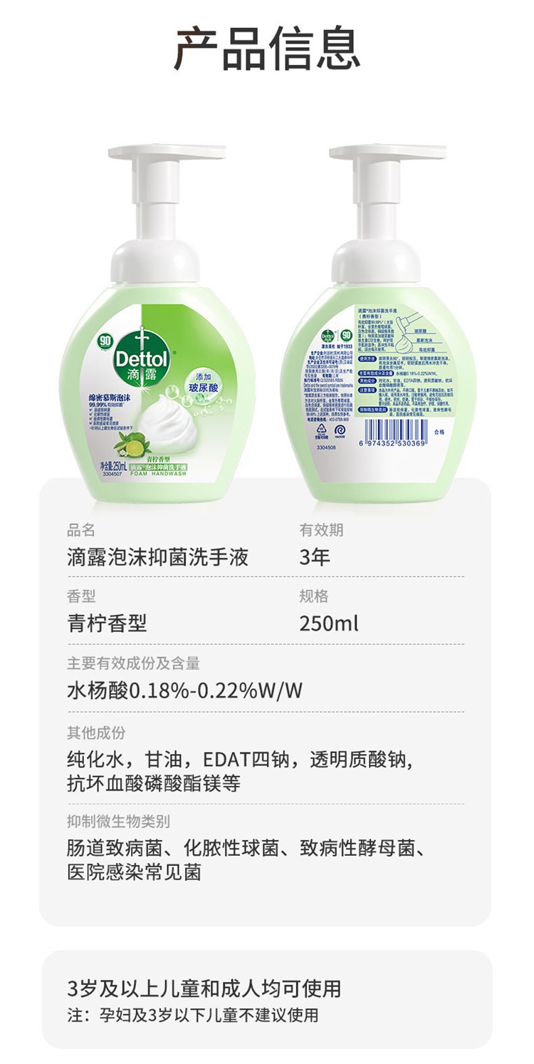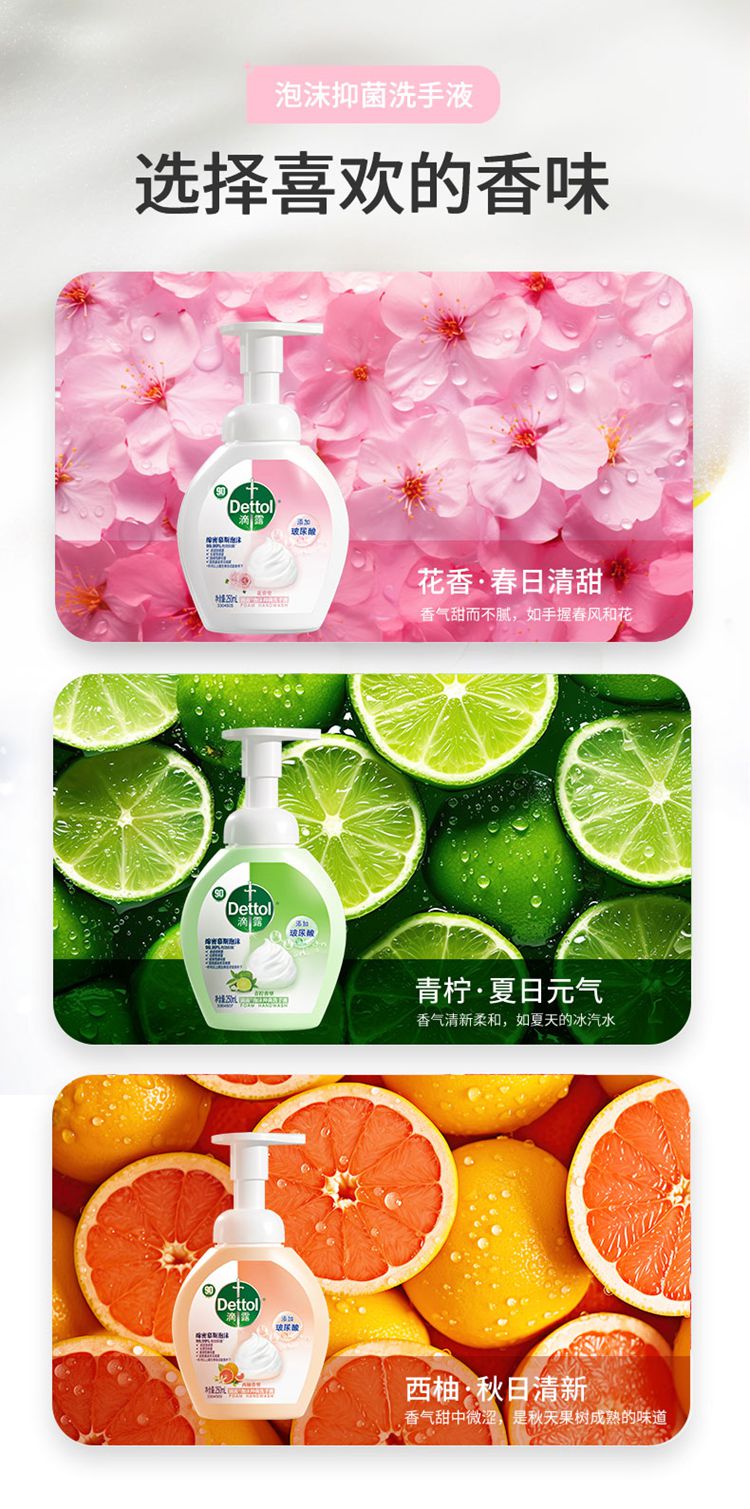 滴露 泡沫慕斯洗手液 花香250ml+西柚250ml+青柠250ml【包邮直发】