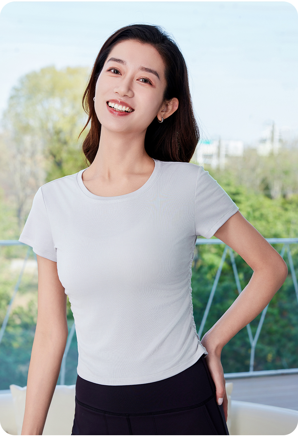 F15325腰部抽褶经典短袖