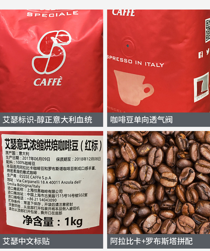 ESSSE艾瑟意式浓缩烘焙咖啡豆(红标)1kg
