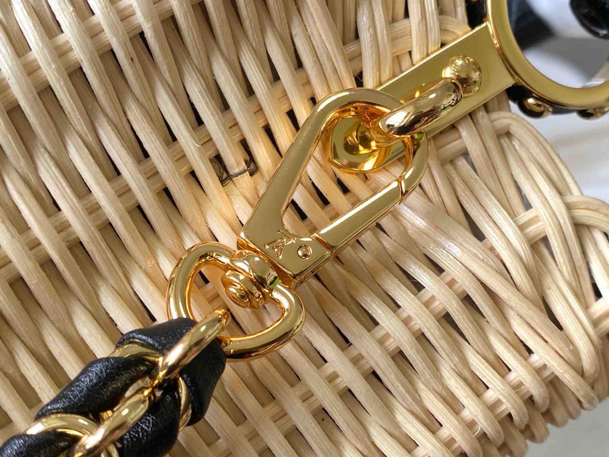 秋冬特惠💰1650 渠道级LV 新品 te级LV 动态芯片 LV X TM CAPUCINES 手袋 M14295/M48865黑色樱桃竹篮 本款Capucines手袋邂逅路易x村上隆系列的瞩目细节 以清新元素烘托潮流格调 藤条包身与手柄、编织肩带和LV字母相得益彰 ding部翻盖细腻点缀樱桃图案 Size : 21 * 14 * 8 CM