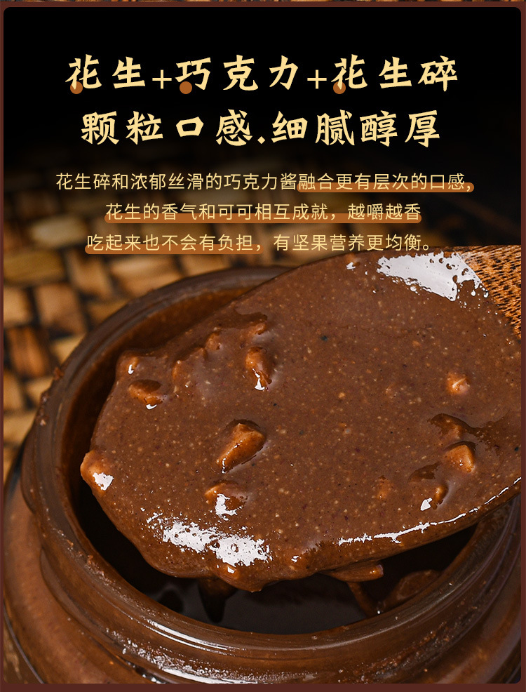 【吐司“杀手”!巧克力颗粒花生酱】满满的花生颗粒与香浓巧克力融合,超好吃,一口就爱上!早餐面包酱拌面调味酱火锅蘸料烘焙原料
