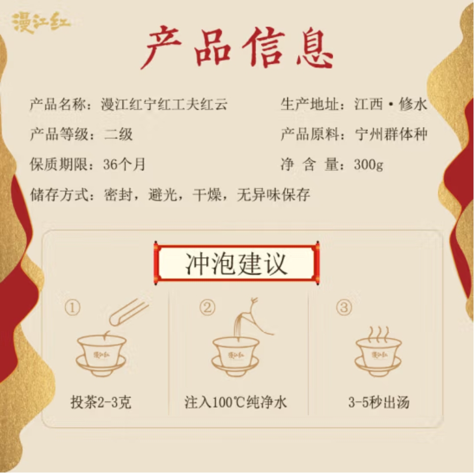 漫江红有机红茶 宁红茶 有机工夫红茶江西特产口粮茶 送长辈 红云茶叶 300g 宁红工夫-漫江红云