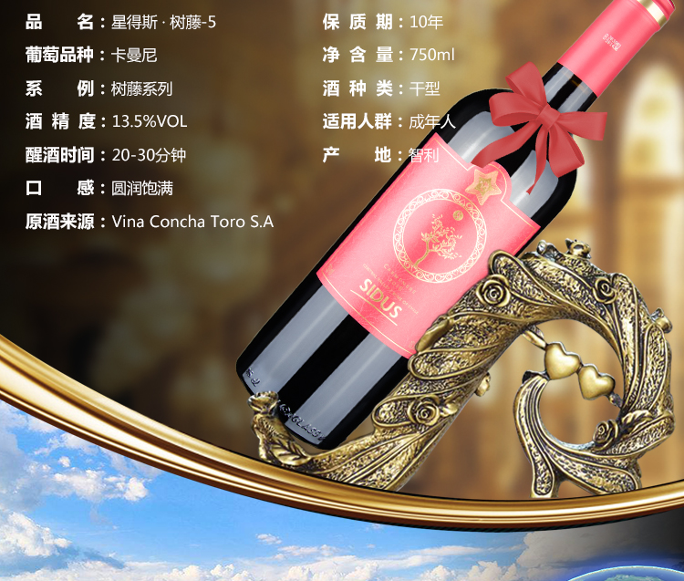 智利 星得斯树藤(5)佳美娜干红葡萄酒 750ml 单支装