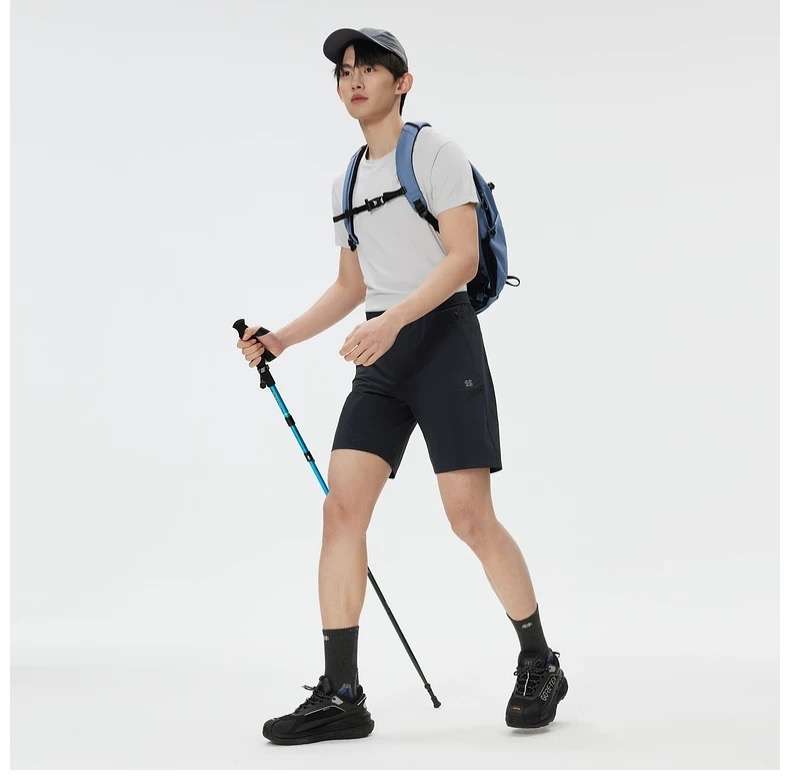 适合夏季户外徒步登山运动时穿着的梭织短裤,具有防风、防晒UPF50+、接触凉感和耐磨功能;腰头采用COOLMAX弹力带结合内藏式全松紧设计,具有吸湿排汗的功能